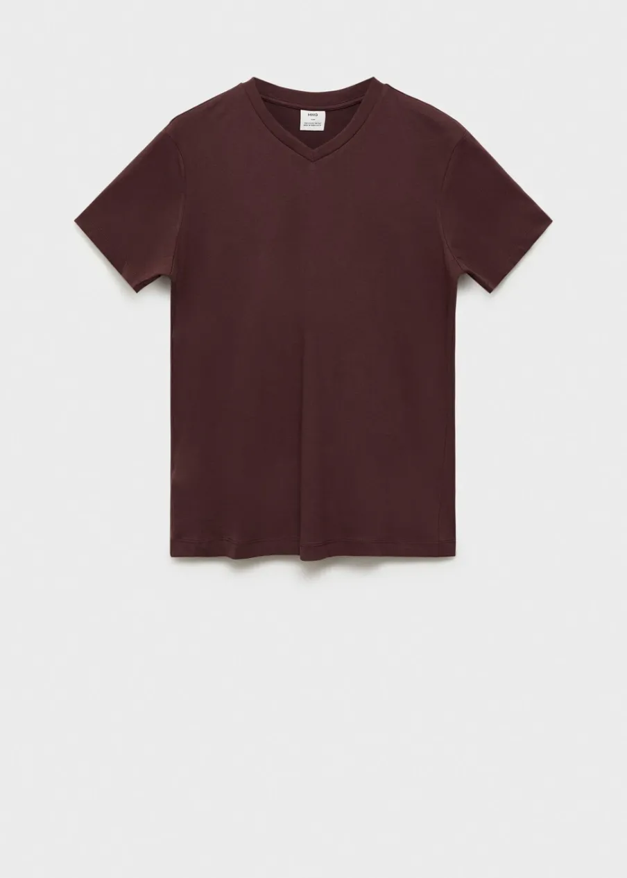 OpisKolory piaskowy i bordowy są dostępne tylko online. 100% bomull. Slim-fit. Dekolt V. Krótki rękaw. Model ma 1…