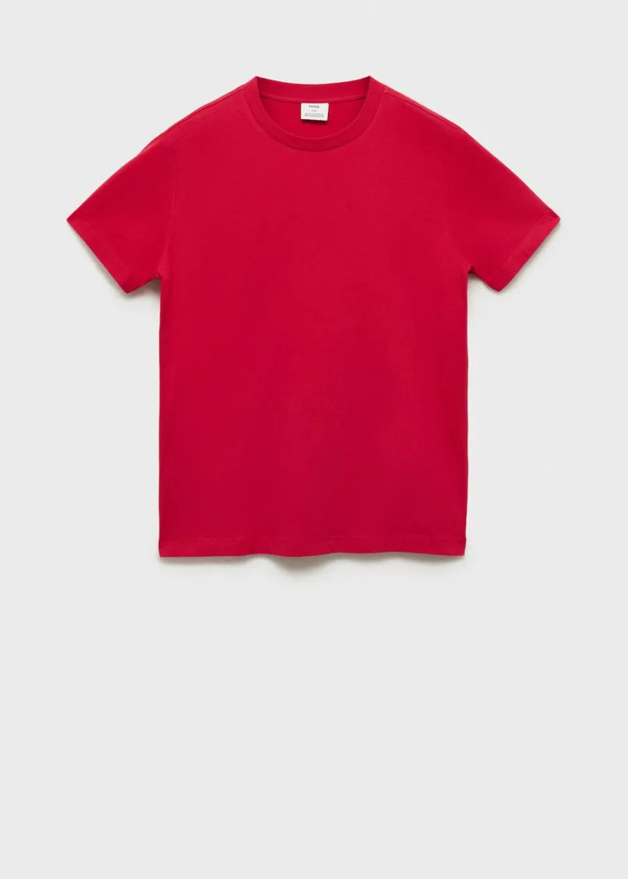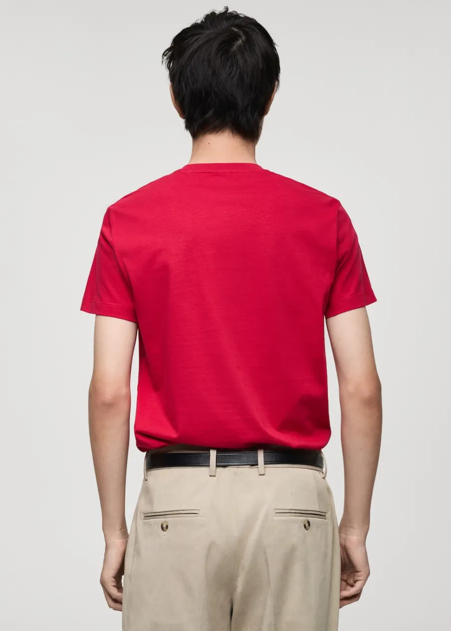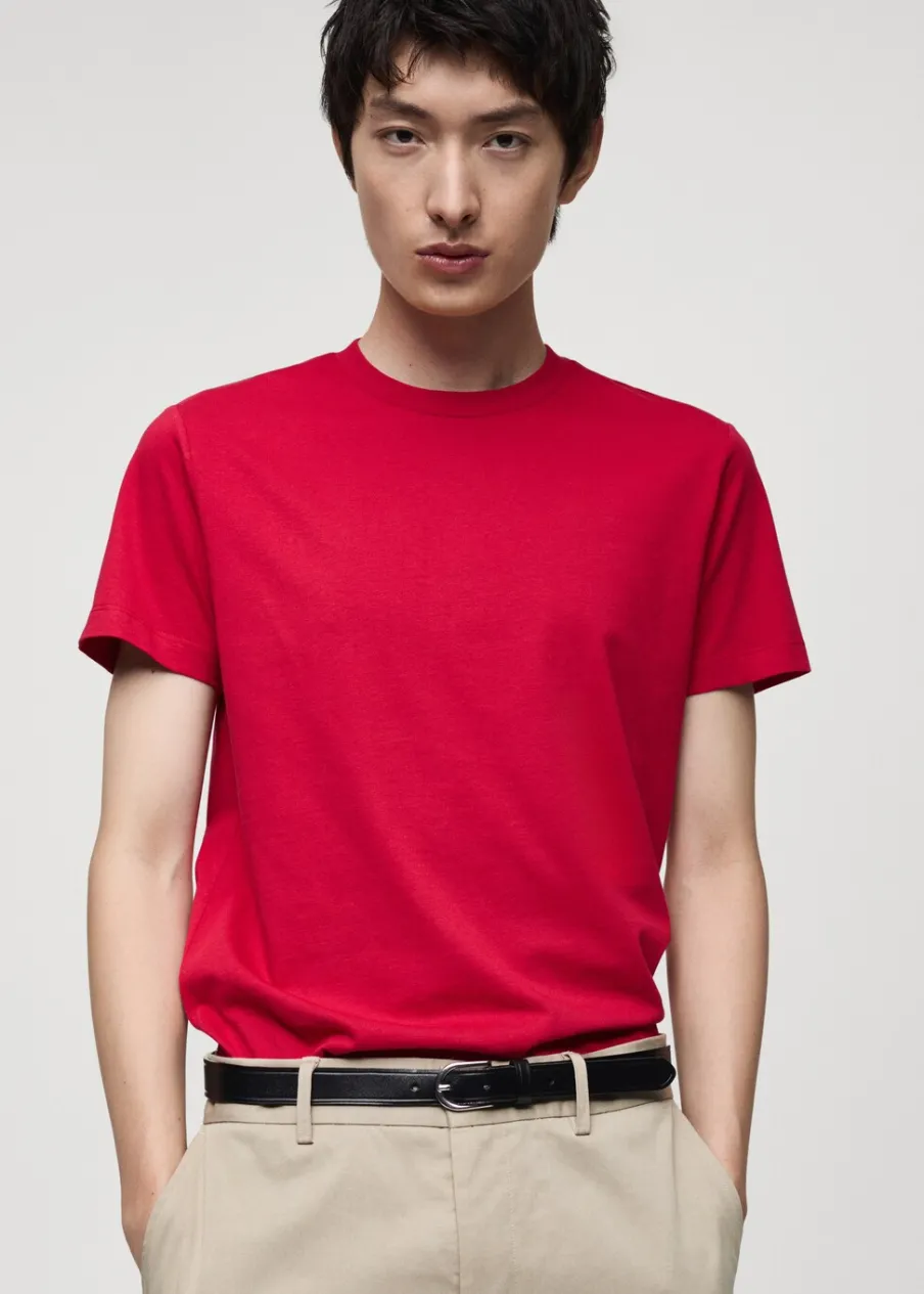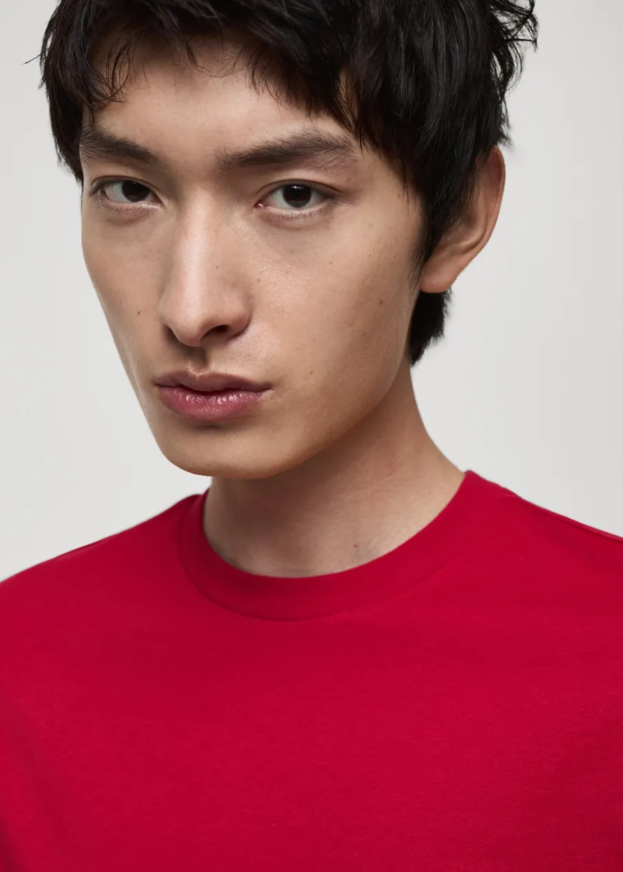 Slim-fit. 100% bomull. Okrągły dekolt. Model ma 185 cm wzrostu i nosi rozmiar M.