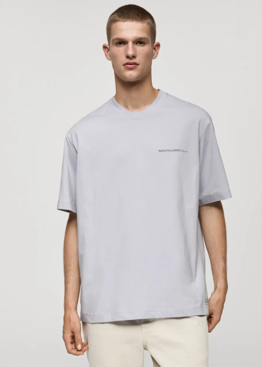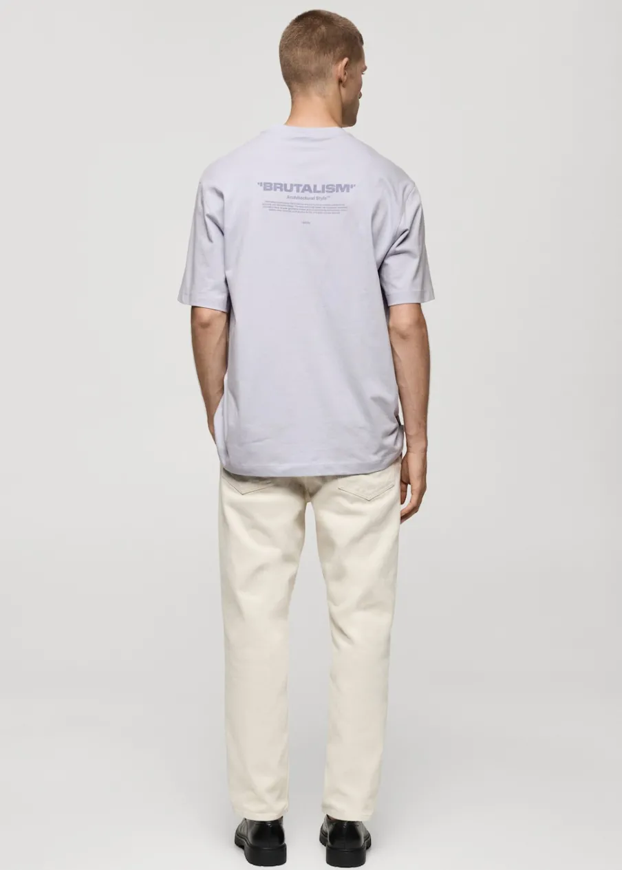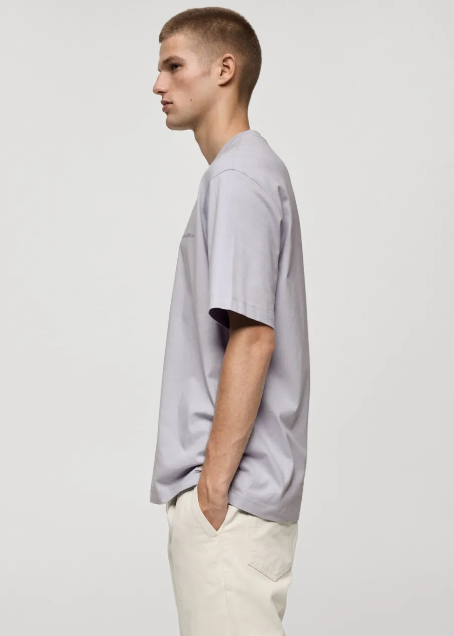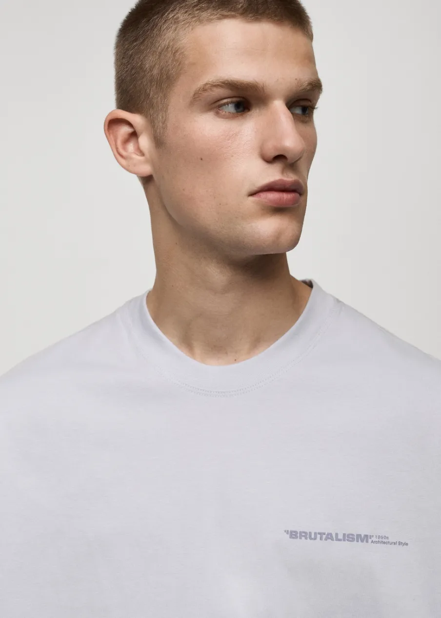 Krój regular. Okrągły dekolt z prążkowanym wykończeniem. Nadrukowany napis na piersi i plecach. Krótki rękaw. Prosty dół. Model ma 190 cm wzrostu i nosi rozmiar M. Tkanina z 100% bawełny.