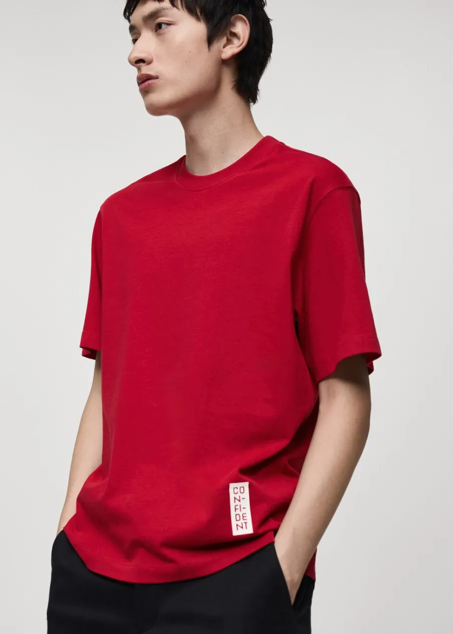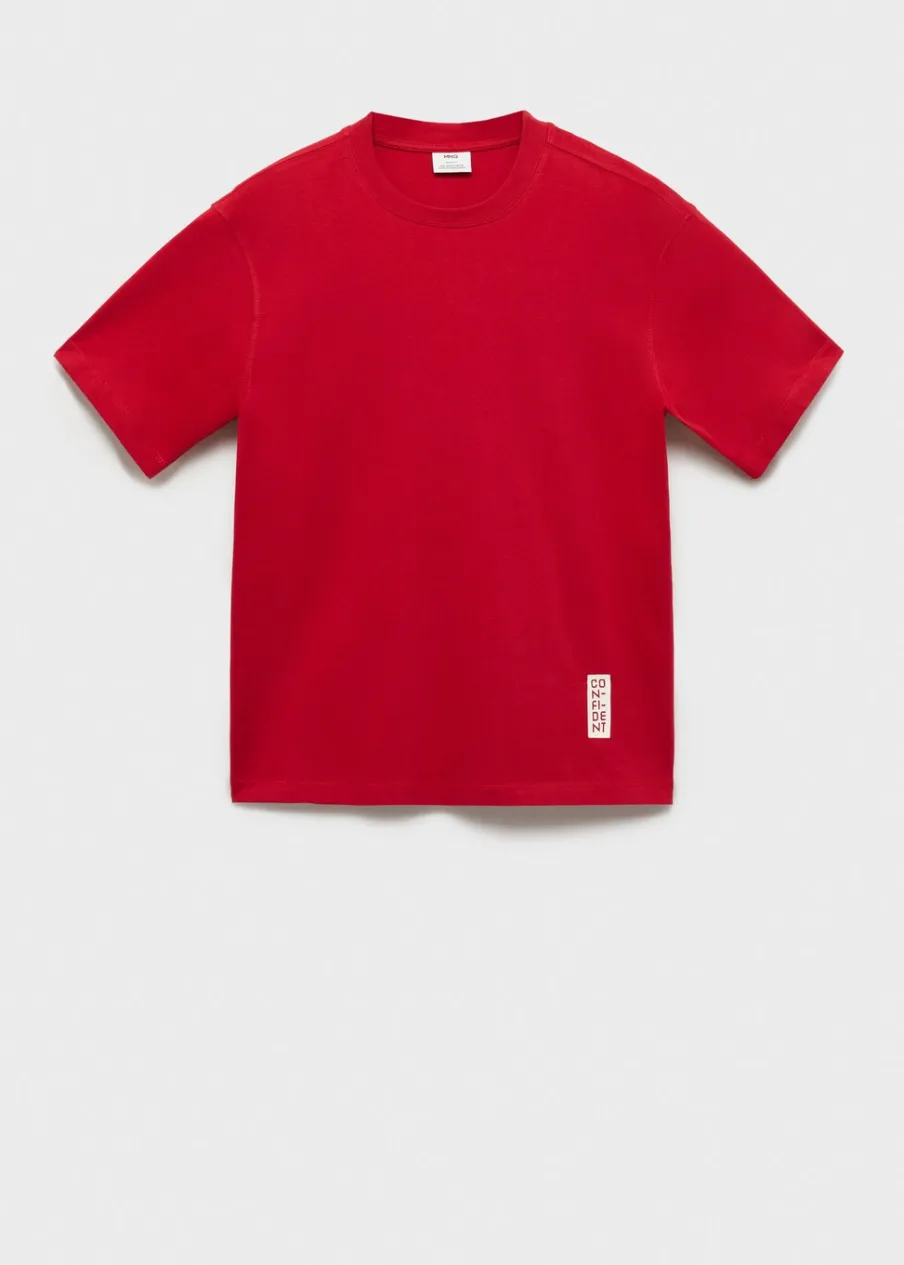 Regular fit, 100% βαμβάκι, elöl nyomtatott minta, a modell testmagassága 185 cm és M-es méretet visel.