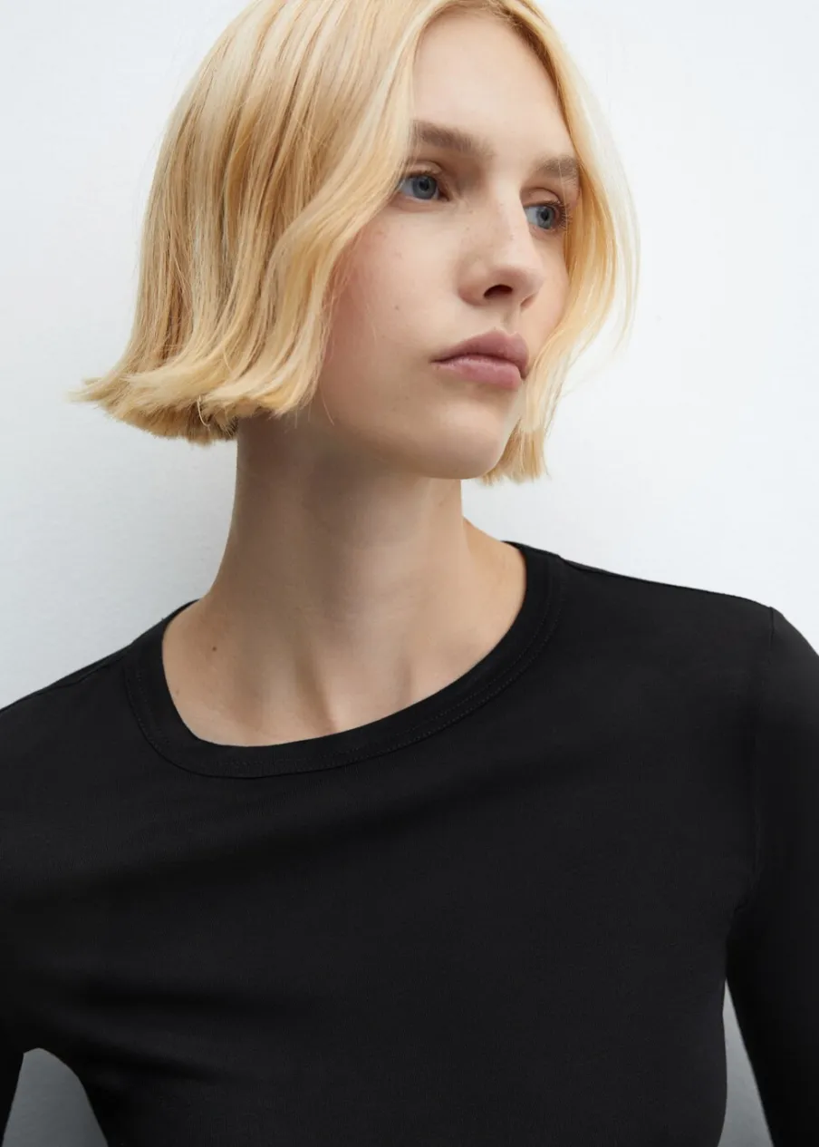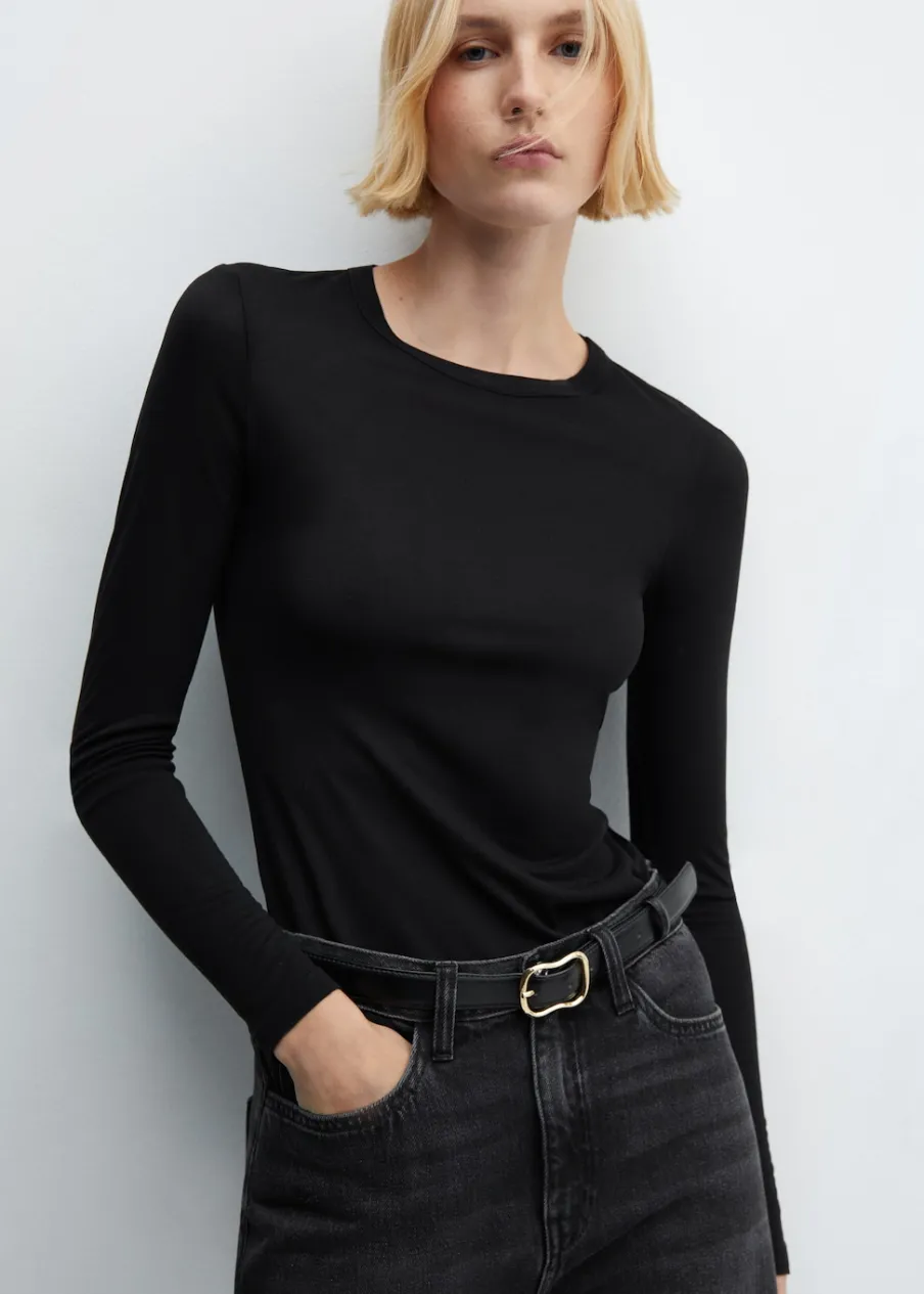 Lejąca tkanina. Elastyczna tkanina. Okrągły dekolt. Długi rękaw. Stylizacje biurowe. Model wcięty.