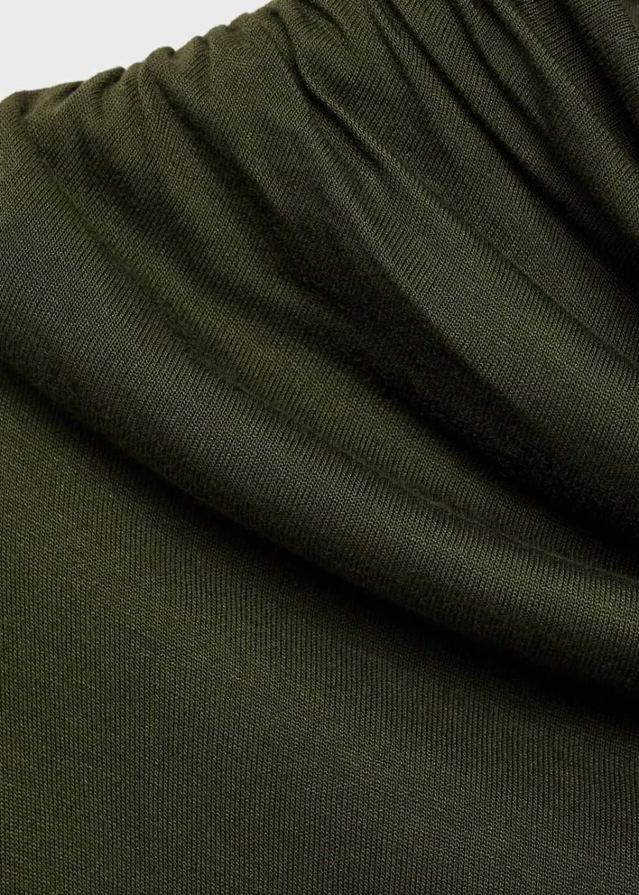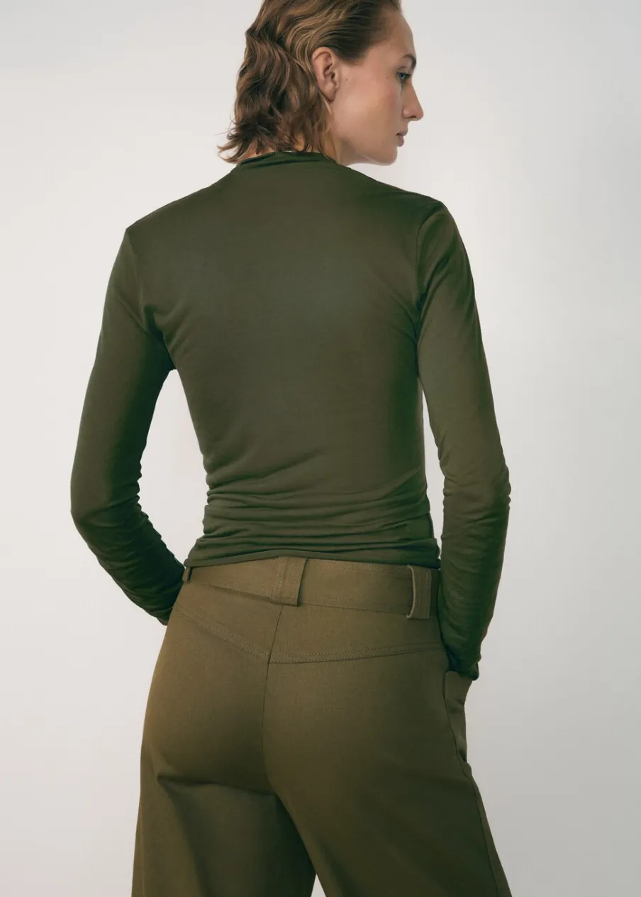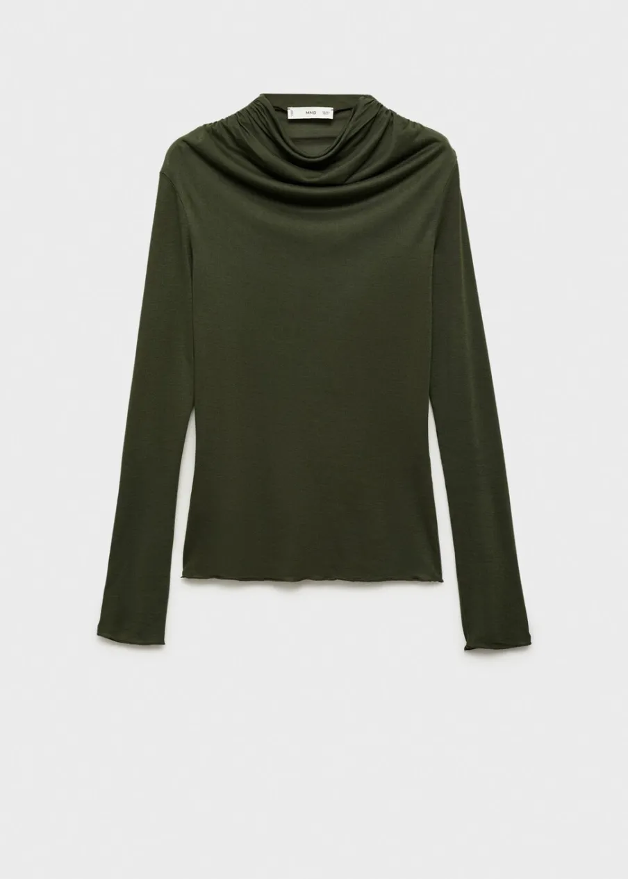 Lejąca tkanina. Model wcięty. Okrągły dekolt. Długi rękaw. Bez zapięcia.