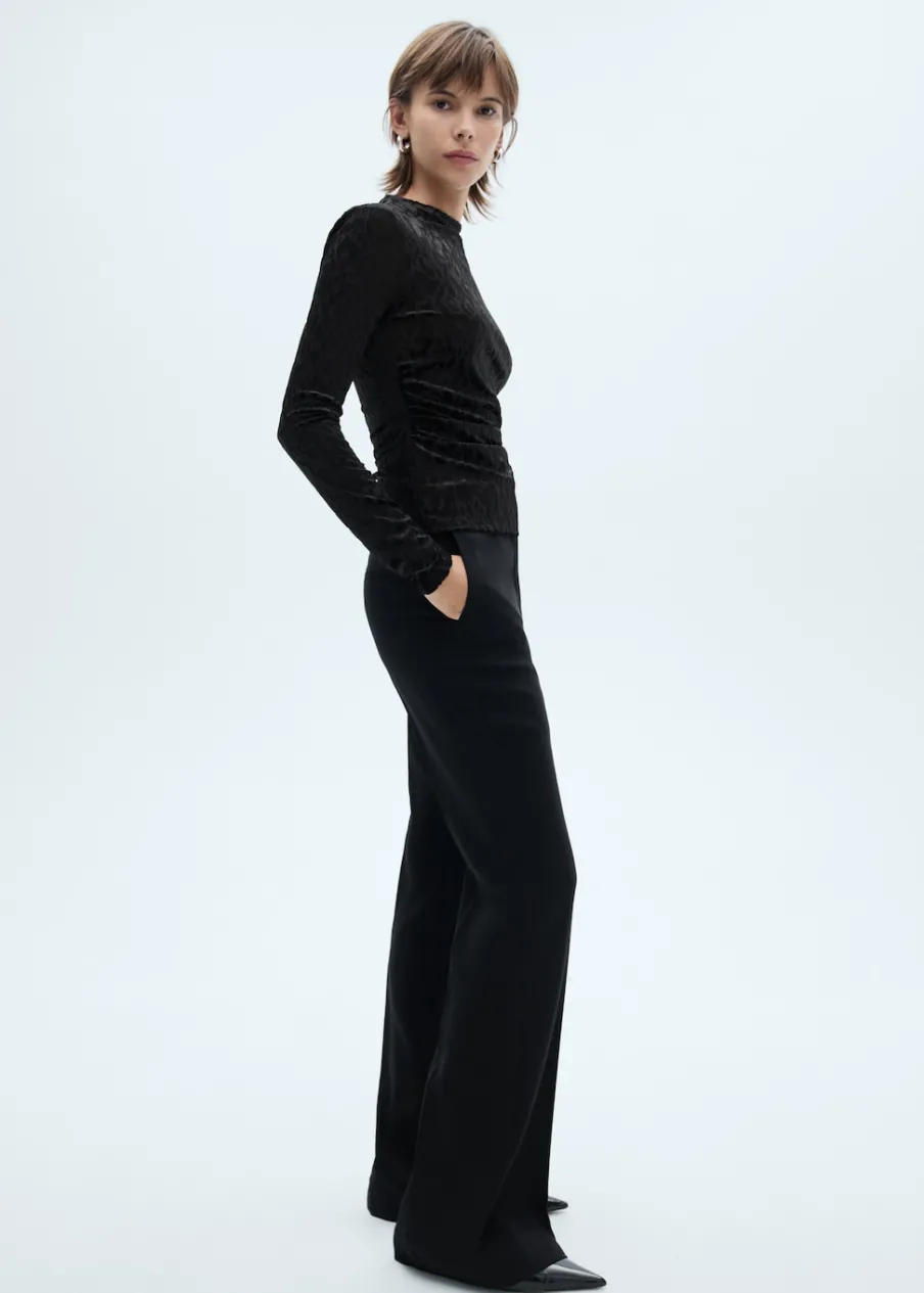 Lejąca tkanina. Model wcięty. Wzór w lamparcie cętki. Półgolf. Długi rękaw. Bez zapięcia. Modelka ma 175 cm wzrostu i nosi rozmiar S/36. Kolekcja wizytowa.