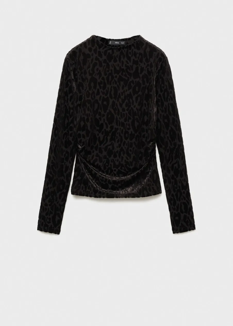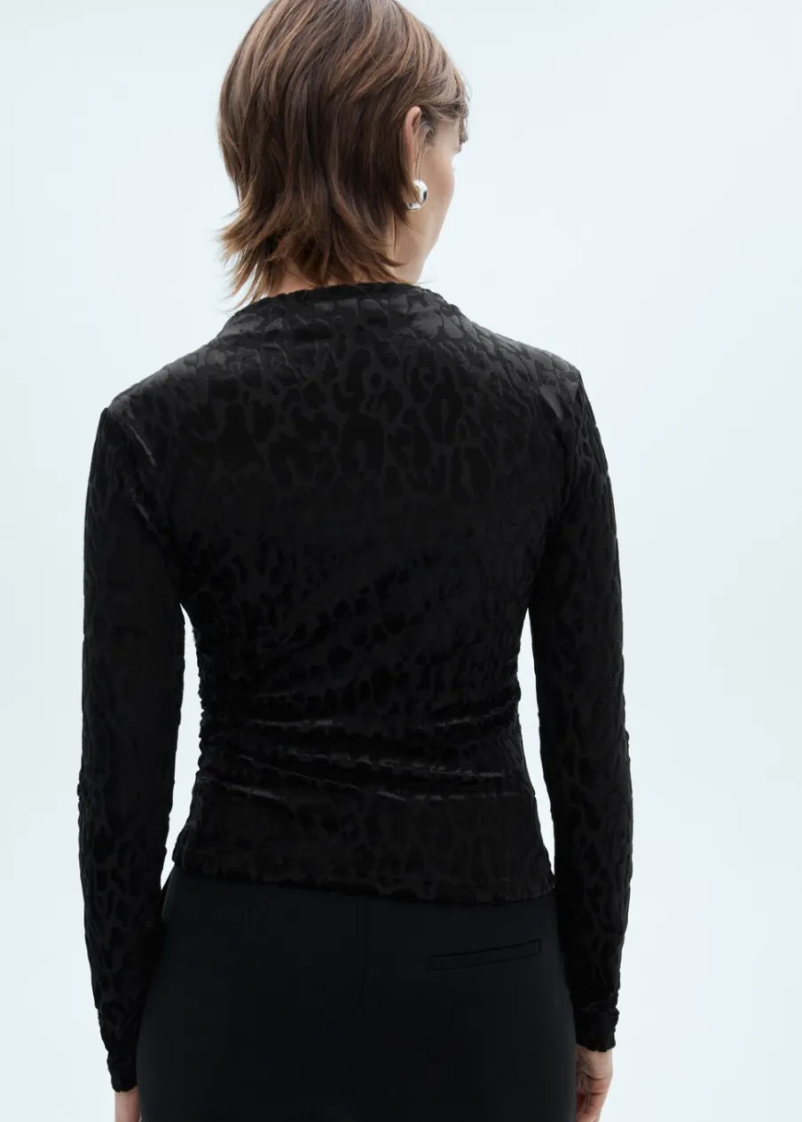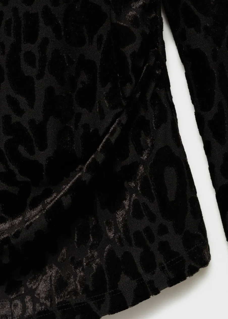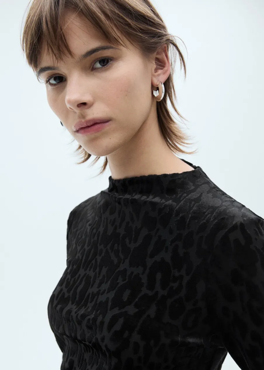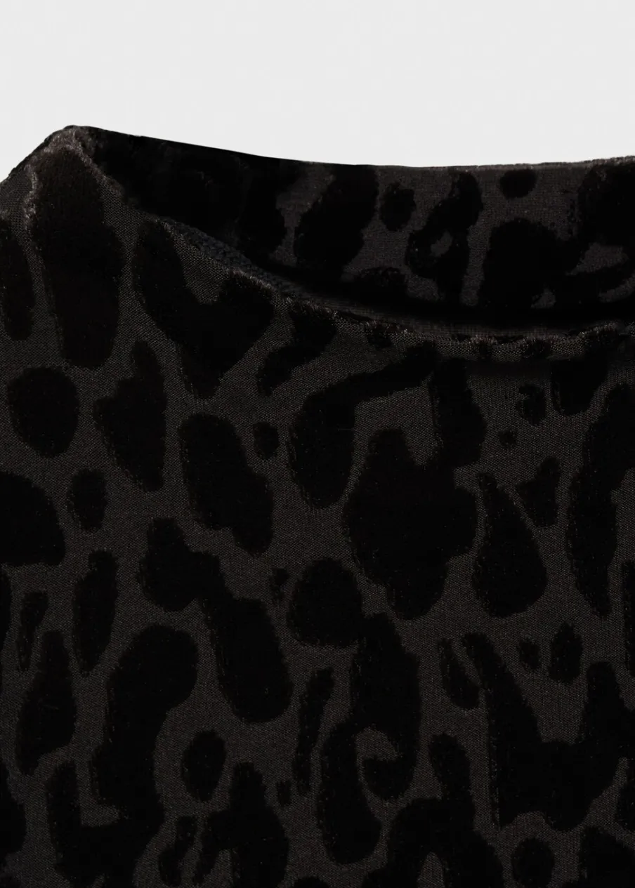 OpisLejąca tkanina. Model wcięty. Wzór w lamparcie cętki. Półgolf. Długi rękaw. Bez zapięcia. Modelka ma 175 cm…