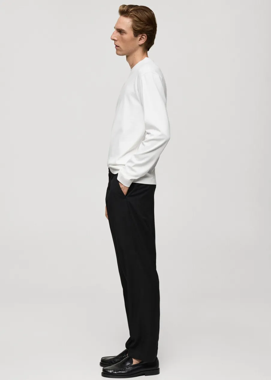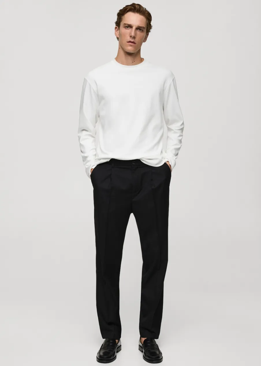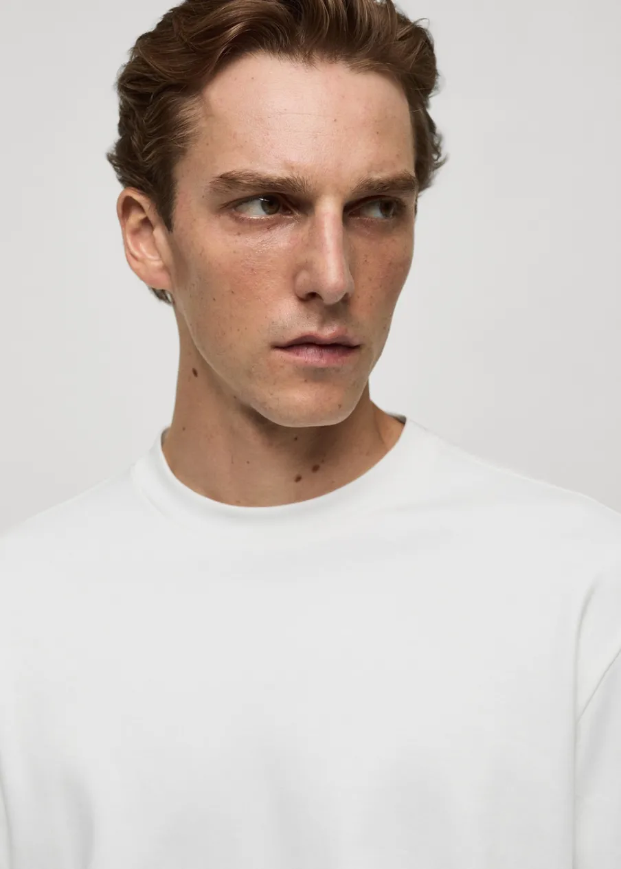 Bawełna 100%. Krój regular. Cienka tkanina. Okrągły dekolt z prążkowanym wykończeniem. Długi rękaw. Prosty dół z rozcięciami po bokach. Model ma 190 cm wzrostu i nosi rozmiar M.