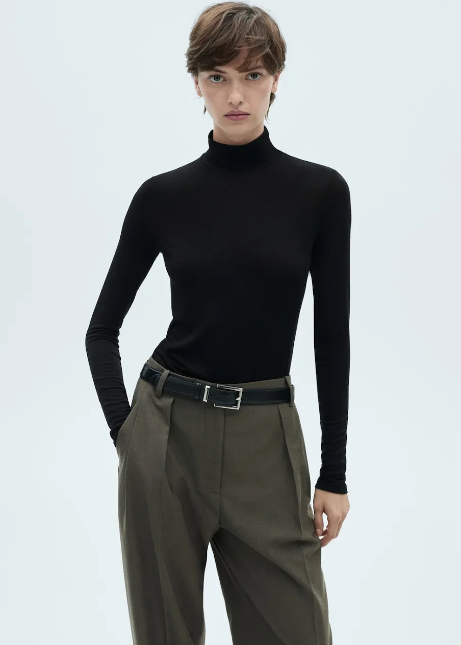 Model standardowy. Lejąca tkanina. Model prosty. Golf. Długi rękaw. Bez zapięcia. Slim-fit. Golf. Cienka tkanina.