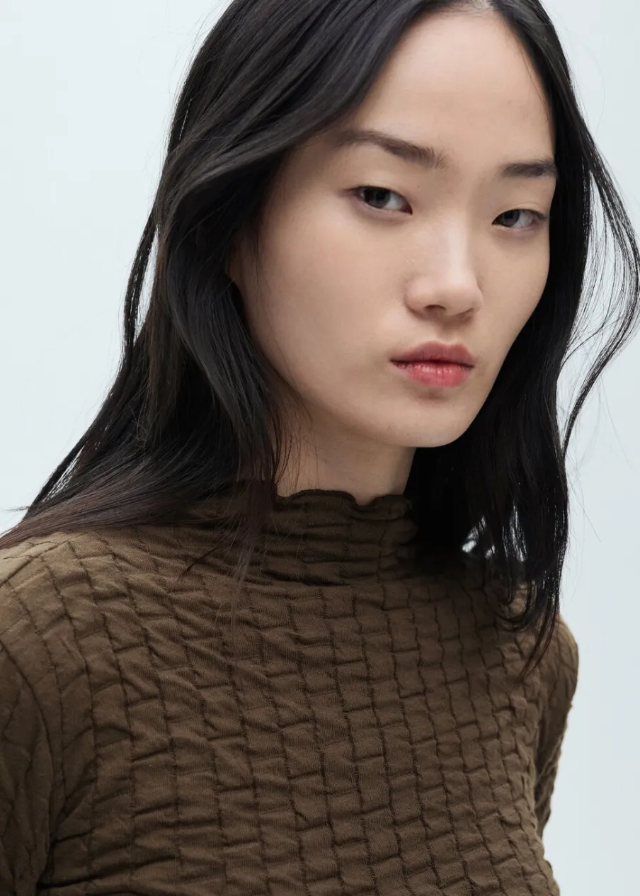 OpisTkanina mieszanka bawełny. Marszczona tkanina. Model prosty. Półgolf. Długi rękaw. Bez zapięcia.
