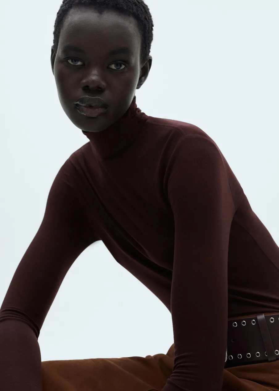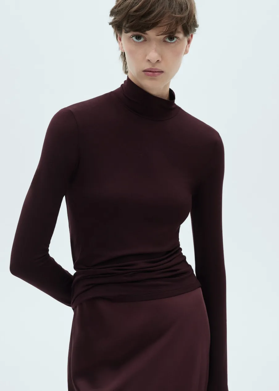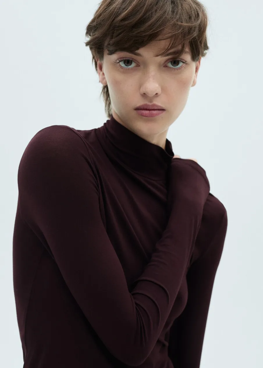 Tkanina z cienkiej dzianiny. Cienka tkanina. Model wcięty. Model standardowy. Półgolf. Długi rękaw. Bez zapięcia.