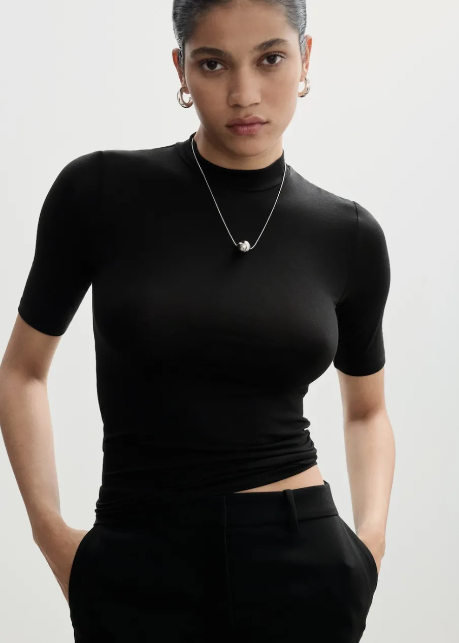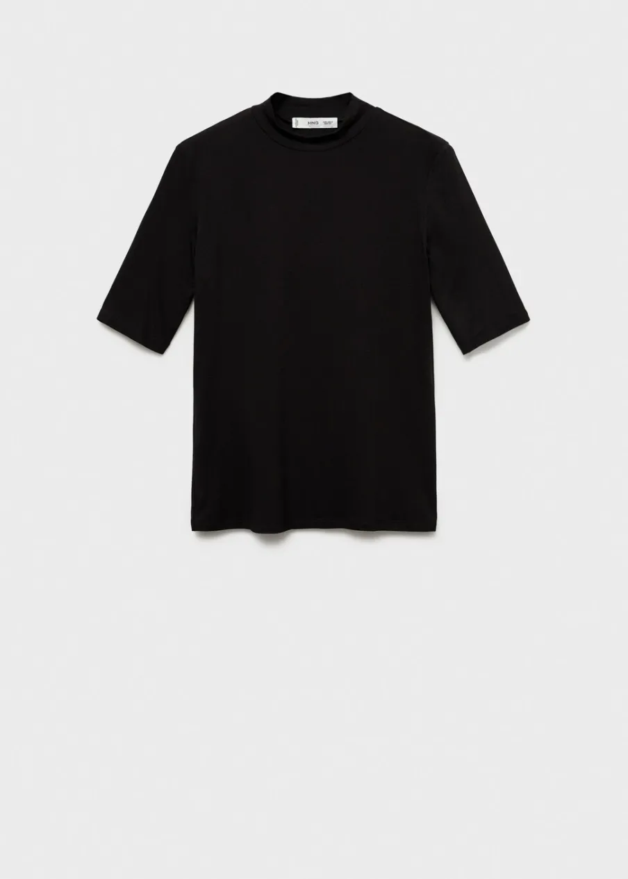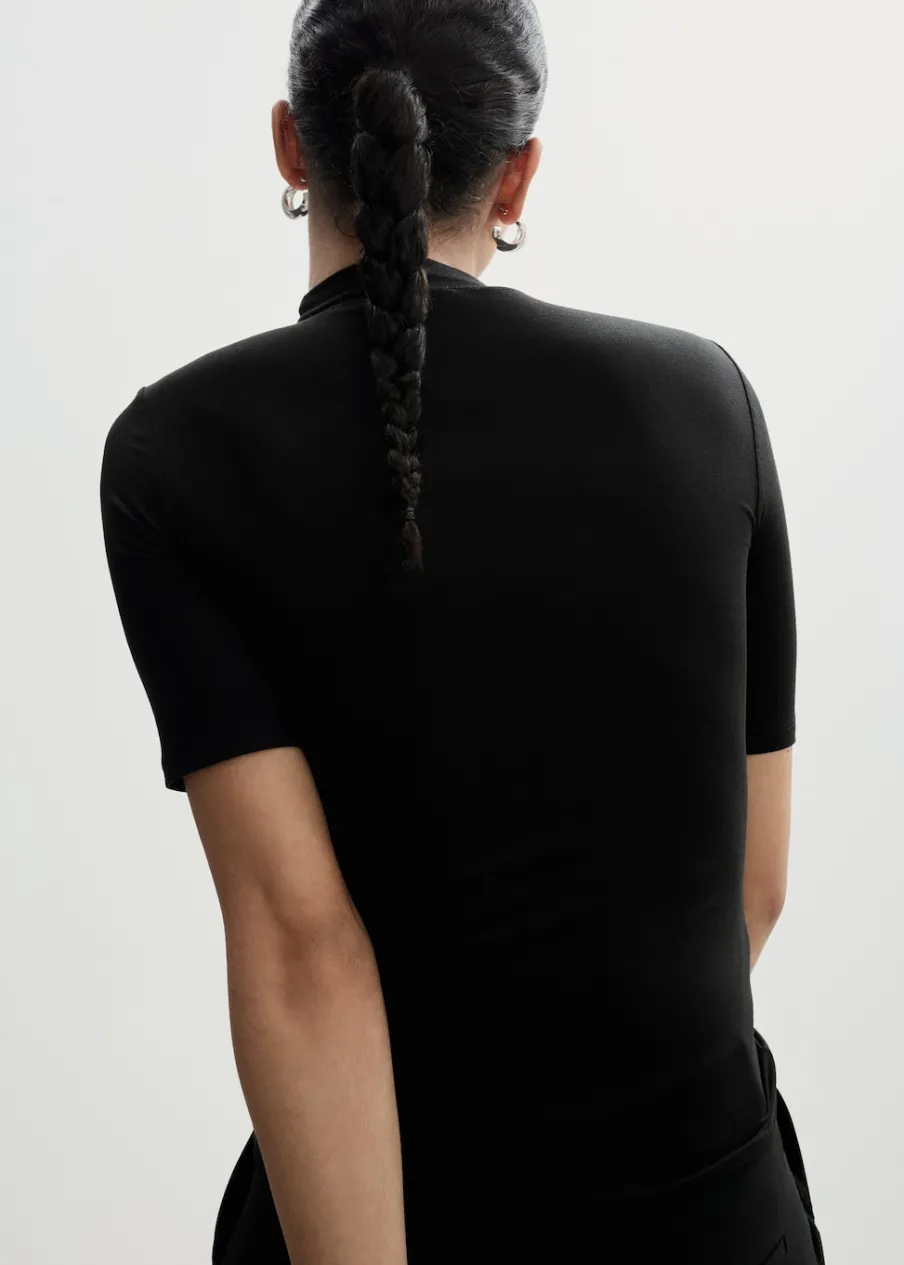 Elastyczna tkanina. Slim-fit. Model wcięty. Półgolf. Krótki rękaw.