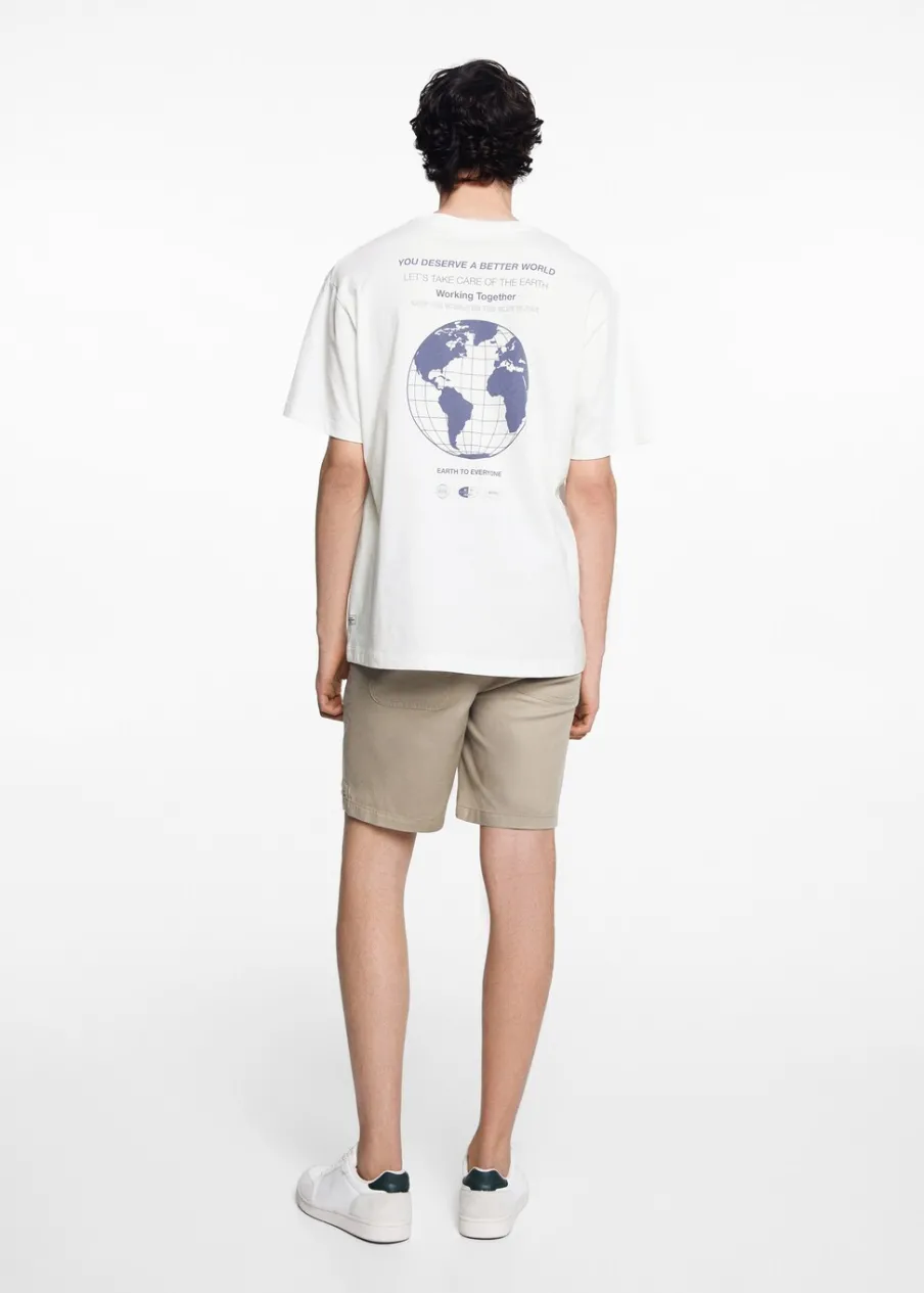 Opis100% bomull. Krój regular. Wzór z tyłu. Nadruk tekstu. Okrągły dekolt. Krótki rękaw.