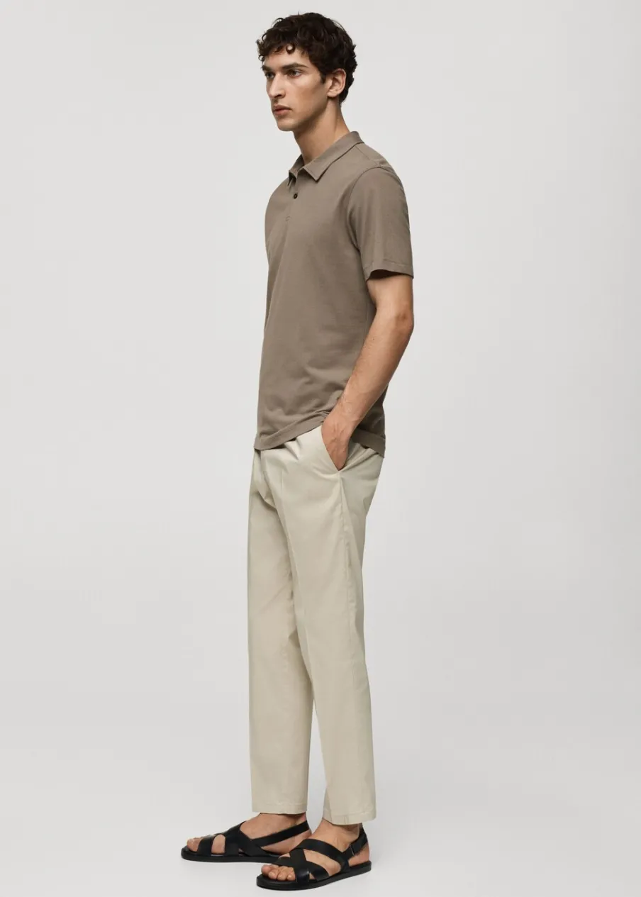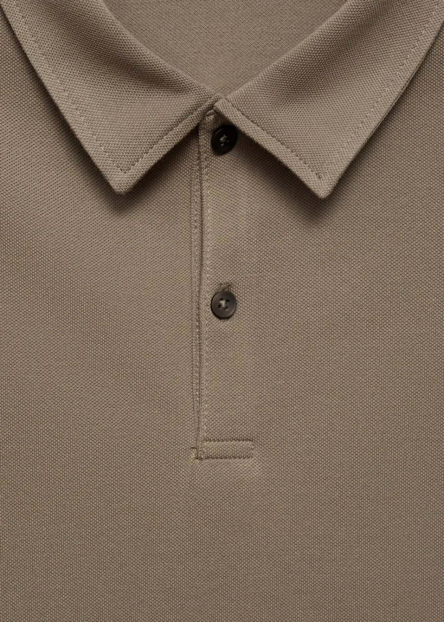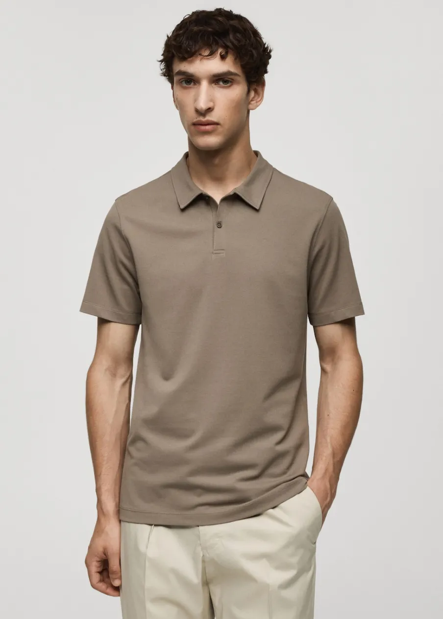 Slim-fit. Tkanina z bawełnianej piki. Kołnierzyk polo. Zapięcie na guziki przy szyi. Krótki rękaw. Prosty dół. Model ma 185 cm wzrostu i nosi rozmiar M. Kolor brązowy dostępny tylko online.