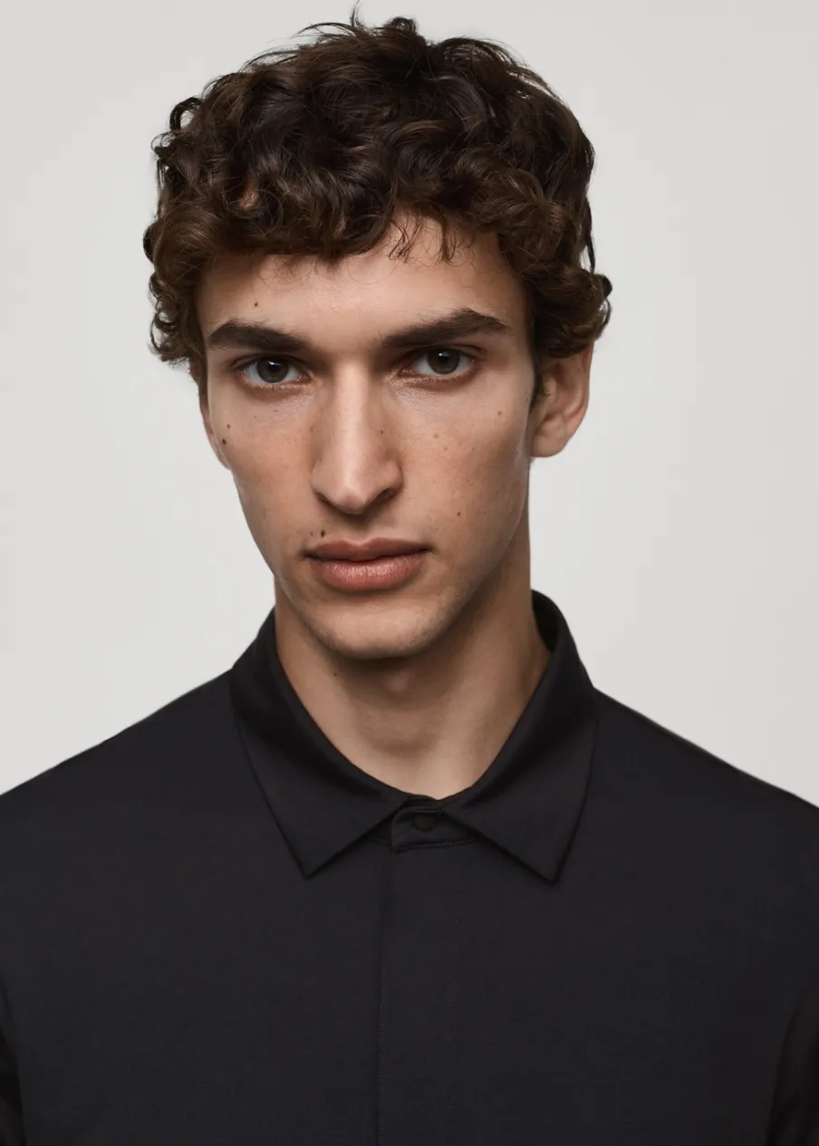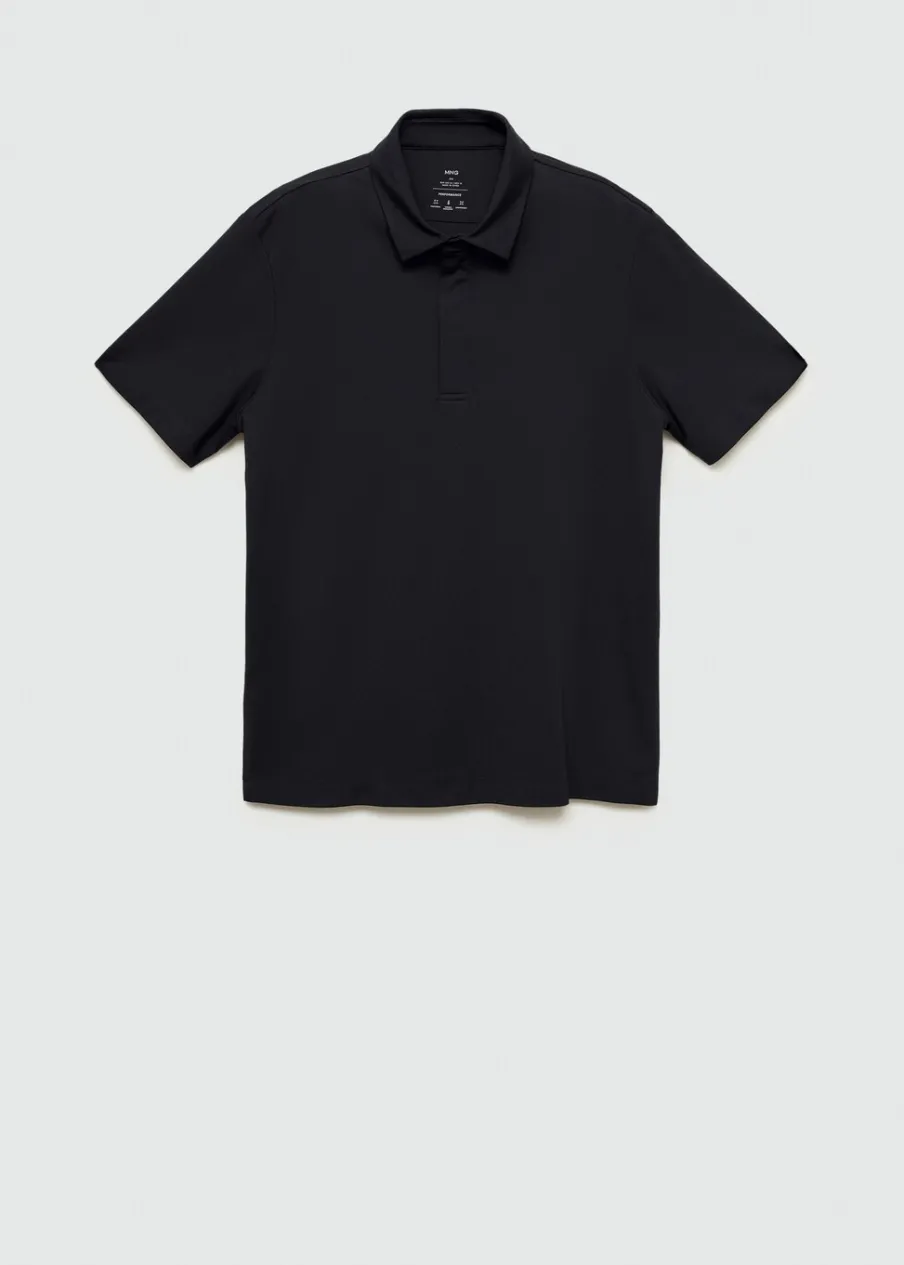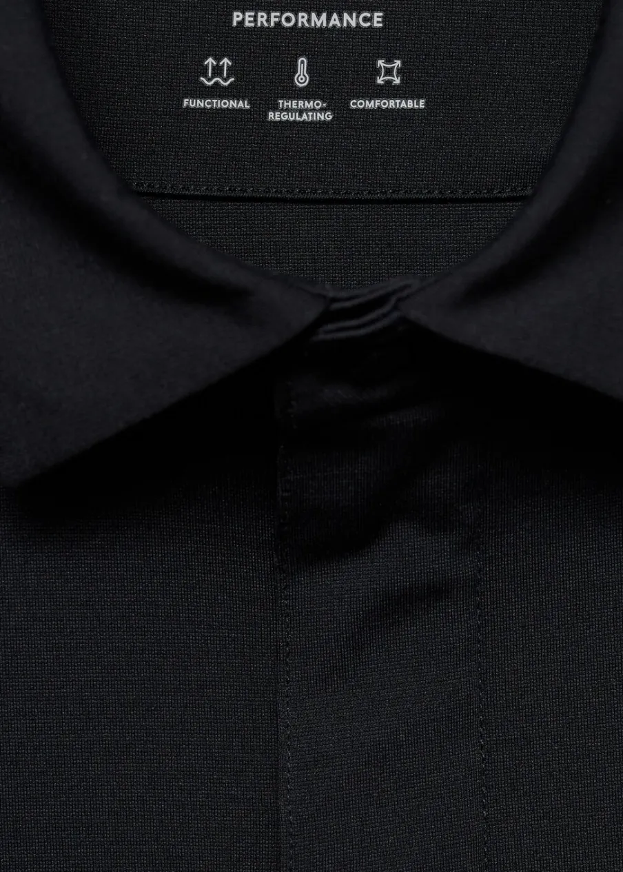 Kolekcja Performance. Comfort stretch: elastyczna tkanina dla większego komfortu. Wrinkle free: niegniotąca się tkanina. Cienka tkanina. Krótki rękaw. Prosty dół. Model ma 190 cm wzrostu i nosi rozmiar M. Termoregulacyjna: ta tkanina zapewnia optymalną przepuszczalność powietrza, by utrzymać stałą temperaturę ciała. Kołnierzyk polo z zapięciem na zamek i guzik. Komfort: to ubranie zapewnia pełną swobodę ruchu i odzyskuje swój pierwotny kształt.