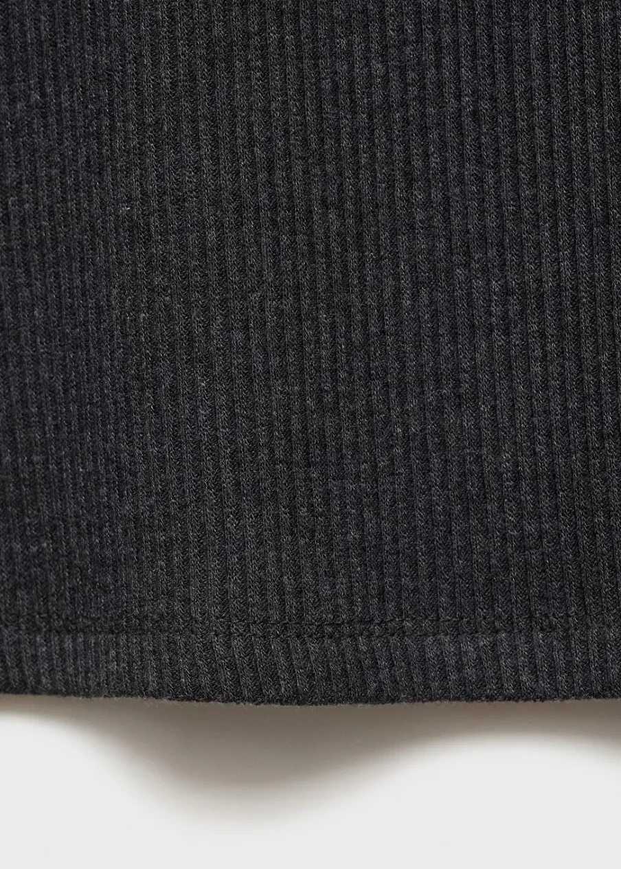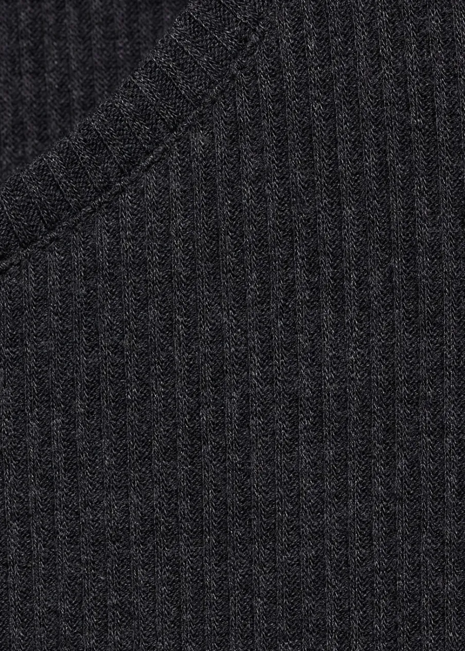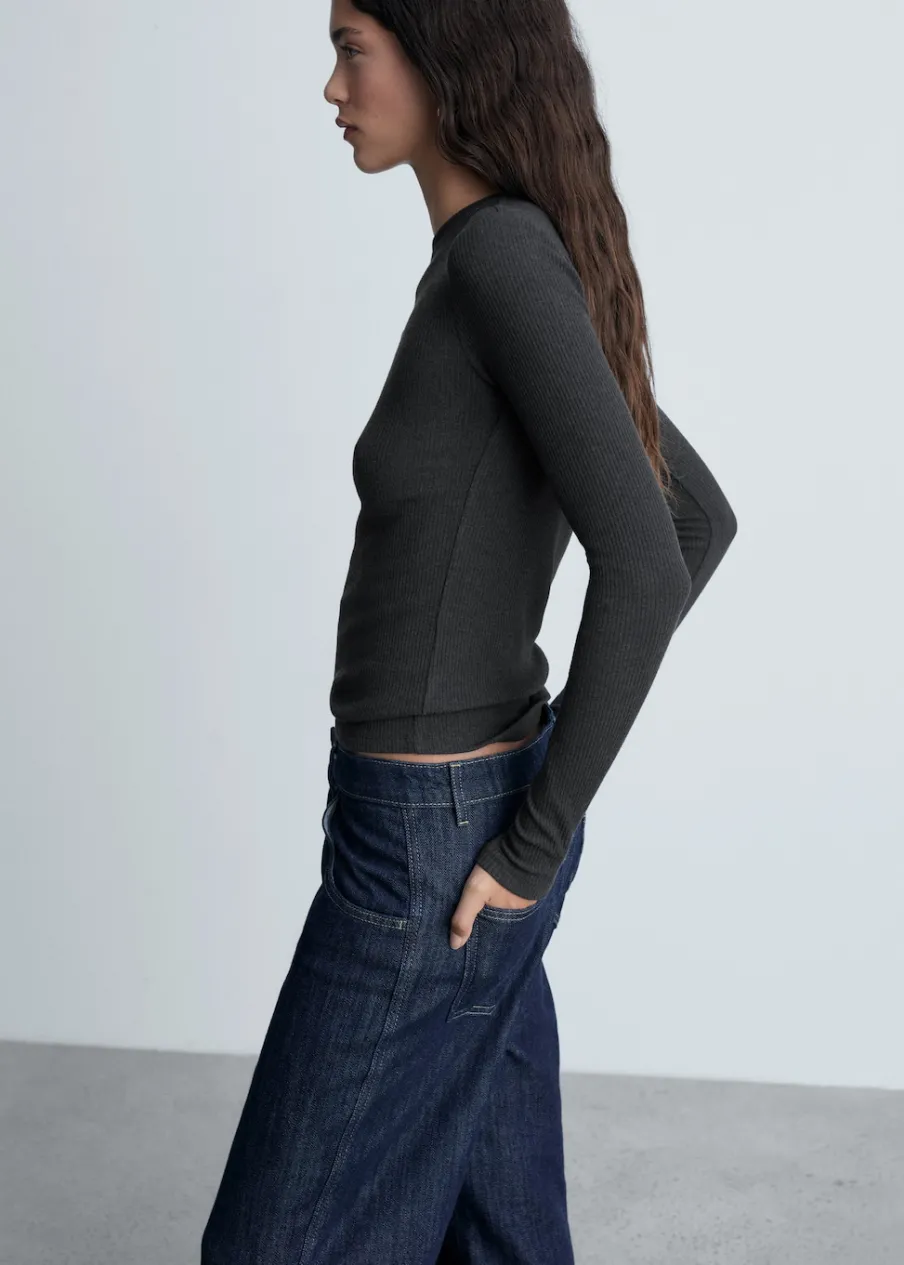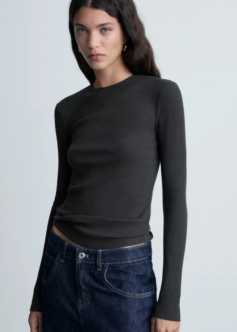 Tkanina ze ściągaczowej dzianiny. Slim-fit. Okrągły dekolt. Długi rękaw. Bez zapięcia.