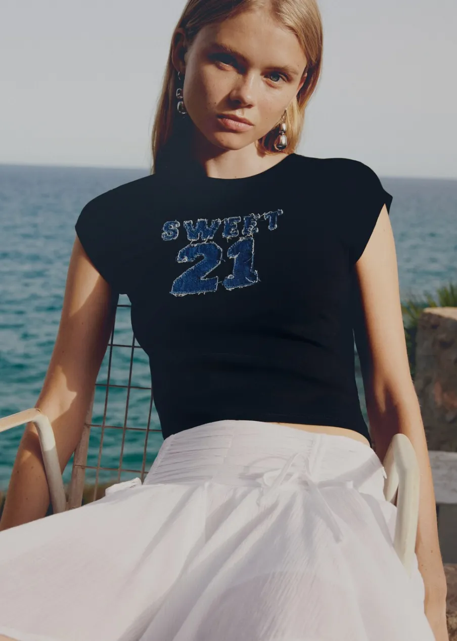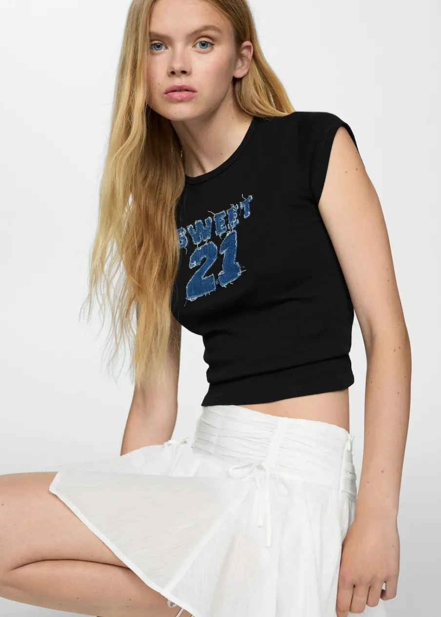 OpisModel prosty. Okrągły dekolt. Krótki rękaw. Nadruk. Tkanina z 100% bawełny.