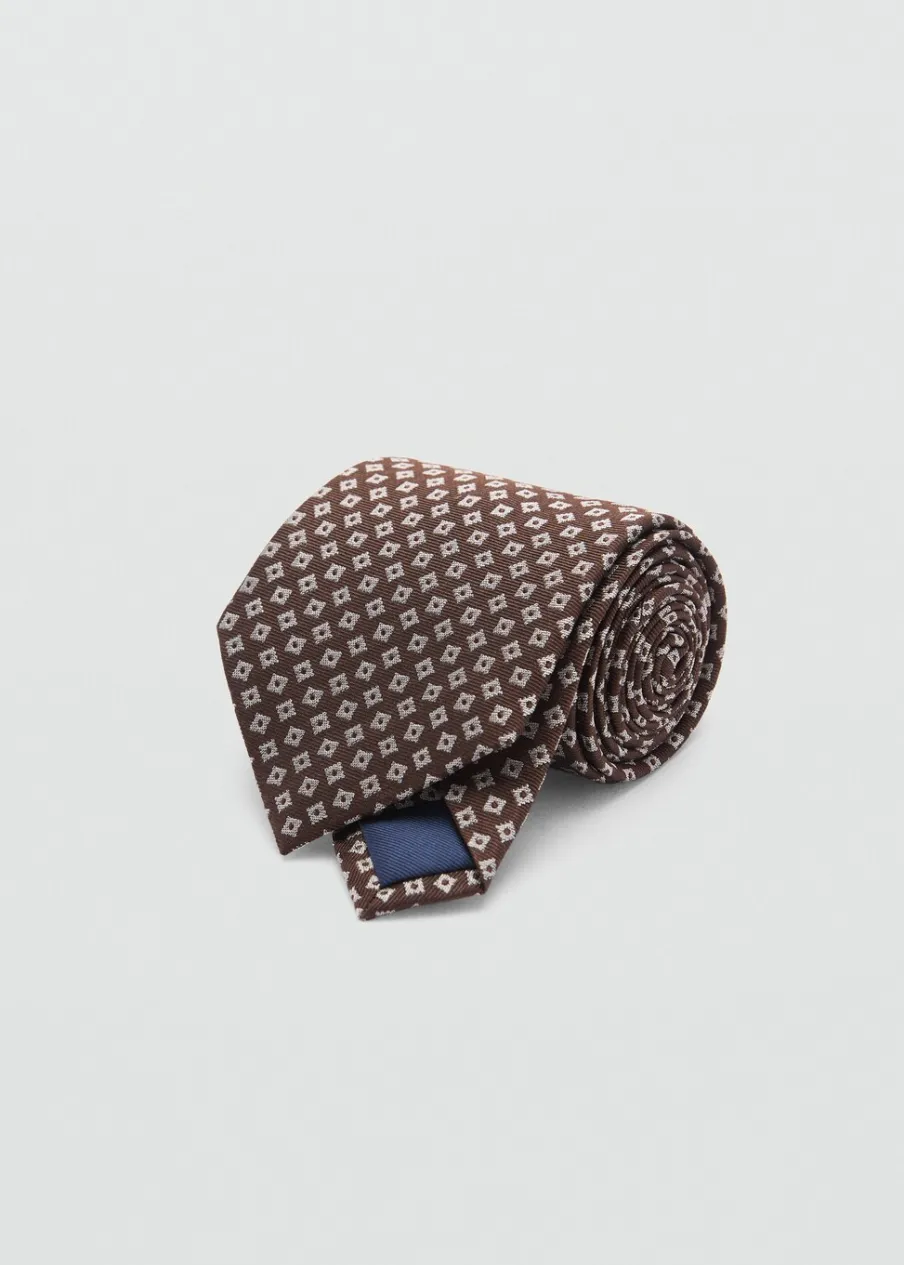 OpisJedwab 100%. Geometryczny wzór. Wykończenie z mikroteksturą. Szerokość 7 cm.
