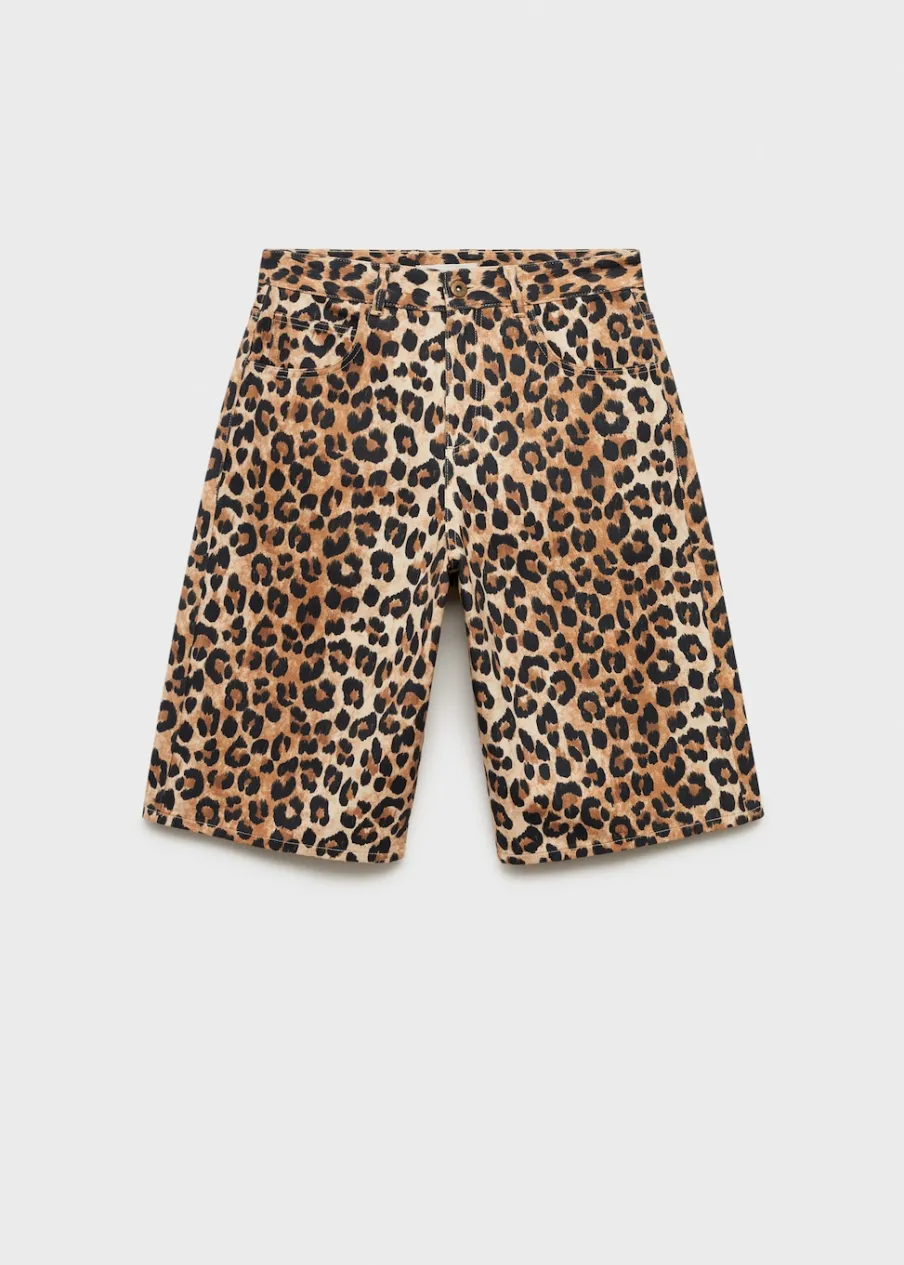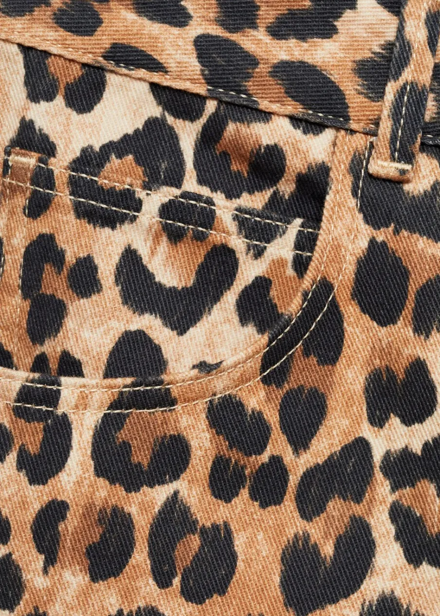 Tkanina bawełniana w dżinsowym stylu. Fason wideleg. Fason cargo. Niski stan. Wzór w lamparcie cętki. Szlufki. Pięć kieszeni. Zapięcie na suwak i guzik. Modelka ma 178 cm wzrostu i nosi rozmiar S/36.