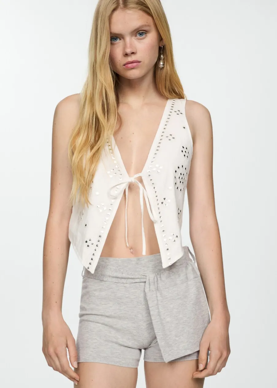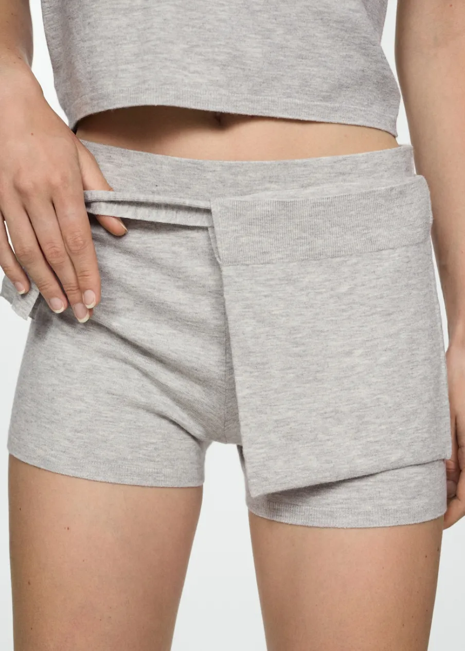 Tkanina z cienkiej dzianiny. Rozmiar mini. Krótki krój. Elastyczny pas. Szlufki. Ozdobna kokardka. Total look. Wyłącznie online. Model wcięty.