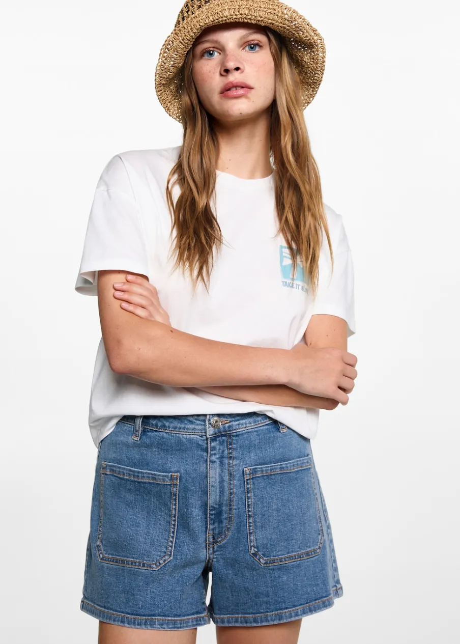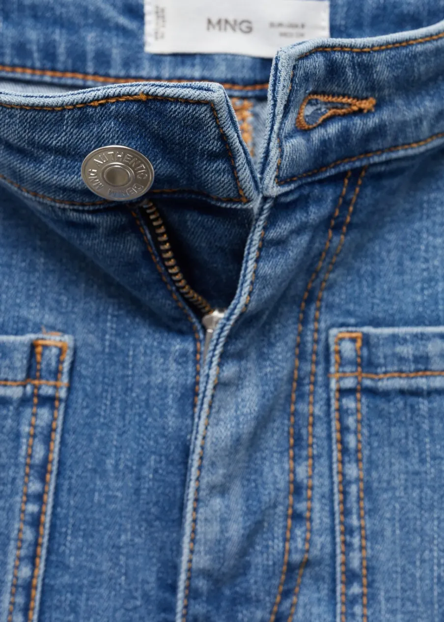 OpisTkanina bawełniana w dżinsowym stylu. Model prosty. Krótki krój. Średni stan. Dwie kieszenie z przodu. Zapięci…