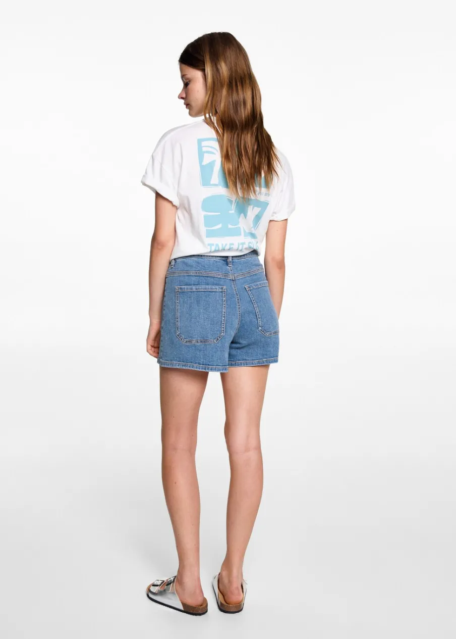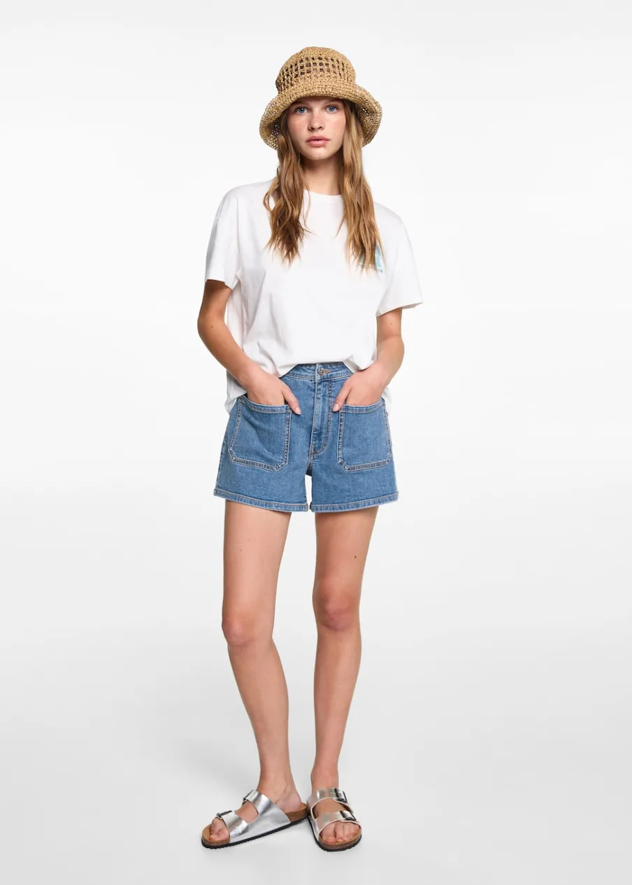 Tkanina bawełniana w dżinsowym stylu. Model prosty. Krótki krój. Średni stan. Dwie kieszenie z przodu. Zapięcie na suwak i guzik.