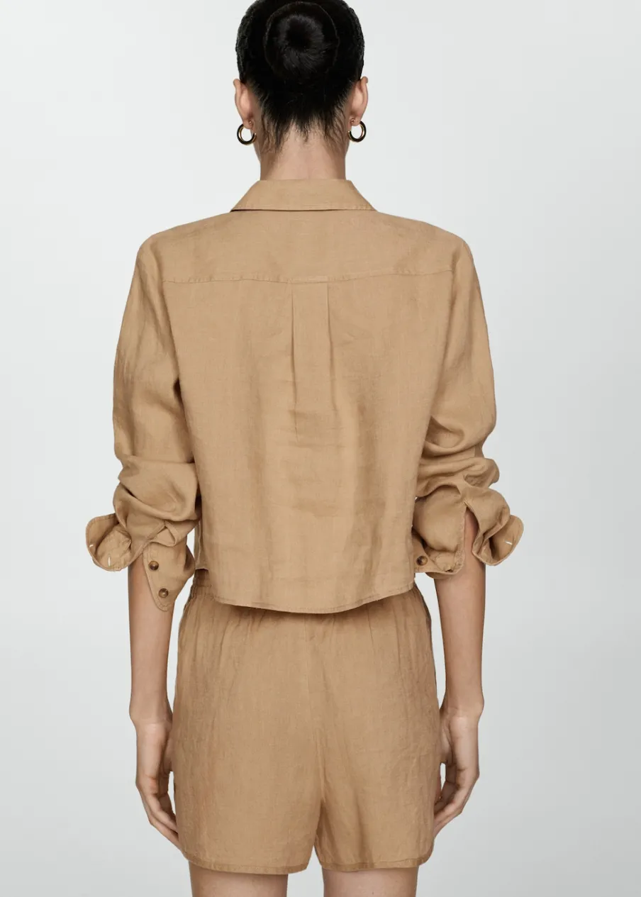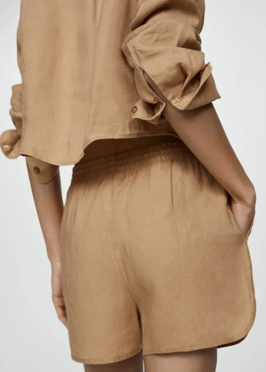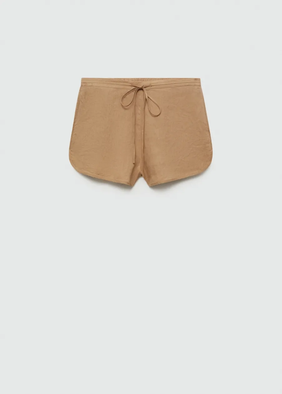 Tkanina z 100% lnu. Średni stan. Krótki krój. Model prosty. Elastyczny pas z wiązanym zapięciem.