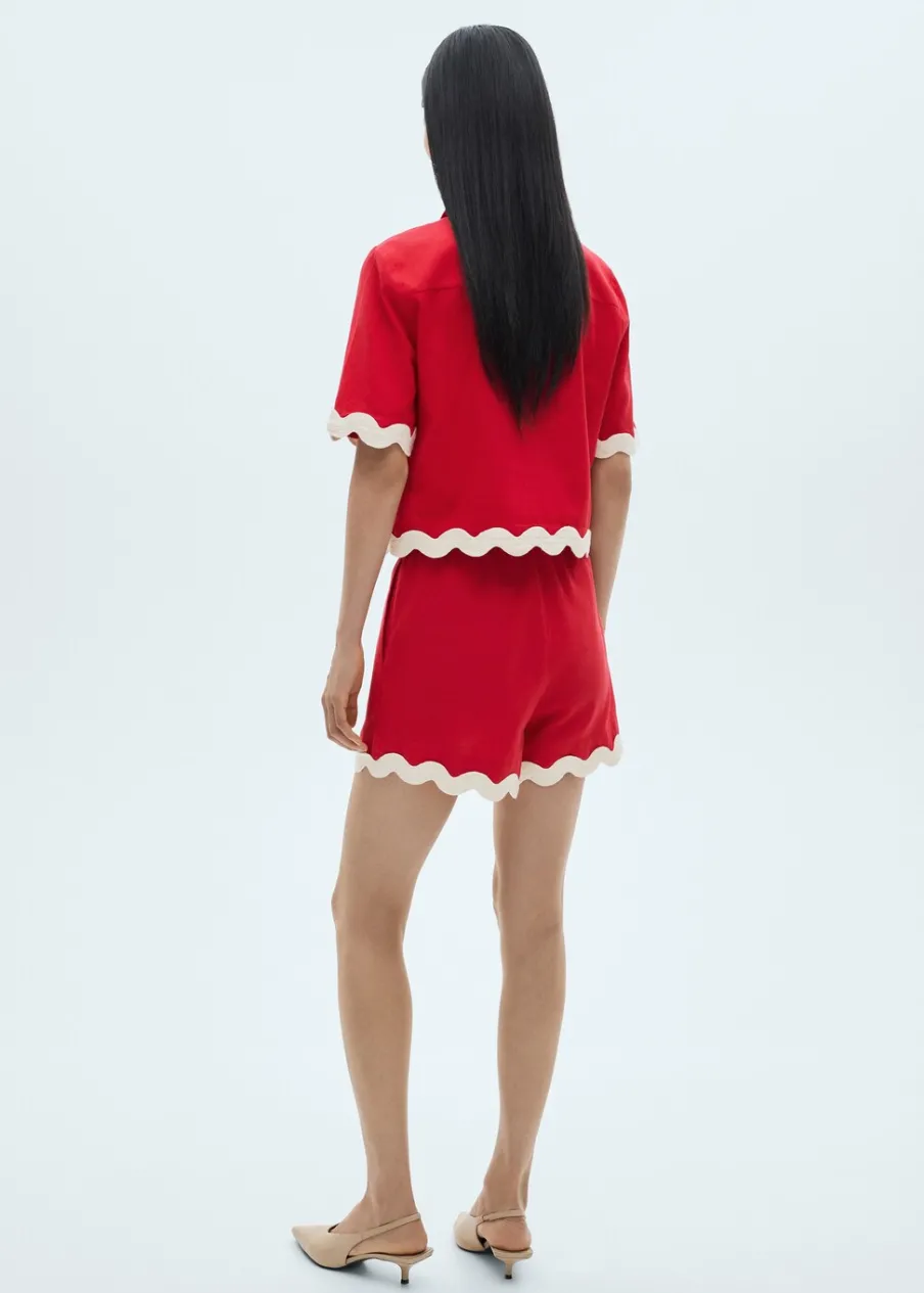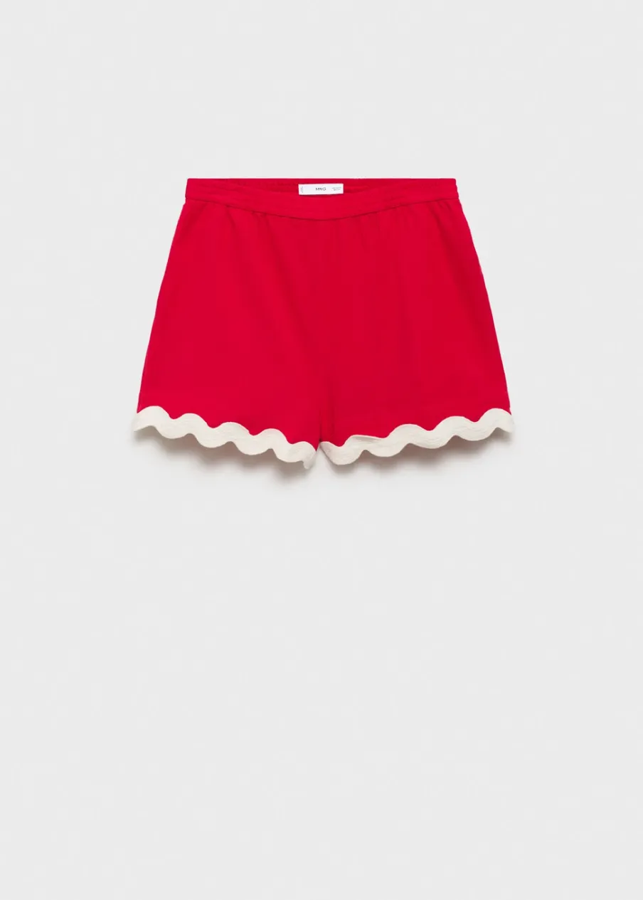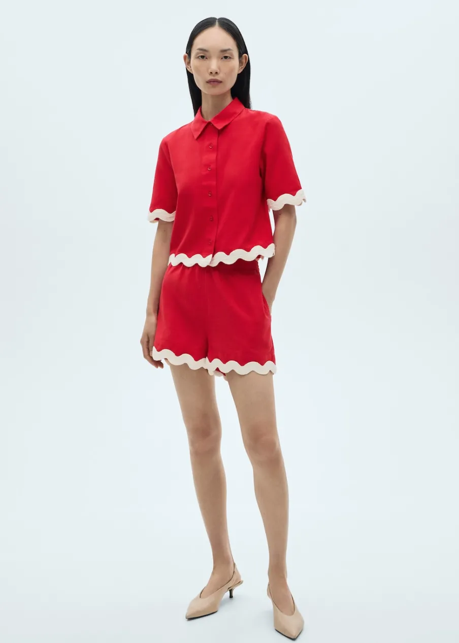 Tkanina z 100% bawełny. Cienka tkanina. Deseń crop. Model prosty. Podwyższony stan. Elastyczny pas. Dwie wpuszczane kieszenie boczne. Bez zapięcia. Kontrastowe wykończenia.