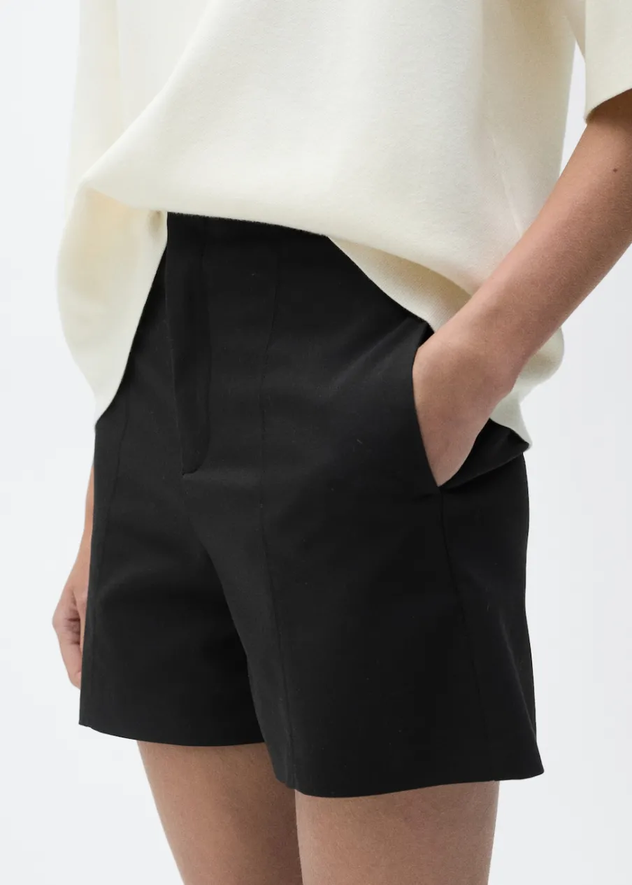 Tkanina mieszanka bawełny. Model prosty. Krótki krój. Podwyższony stan. Dwie wpuszczane kieszenie boczne. Zapięcie na suwak i haftkę. Wewnętrzna podszewka.