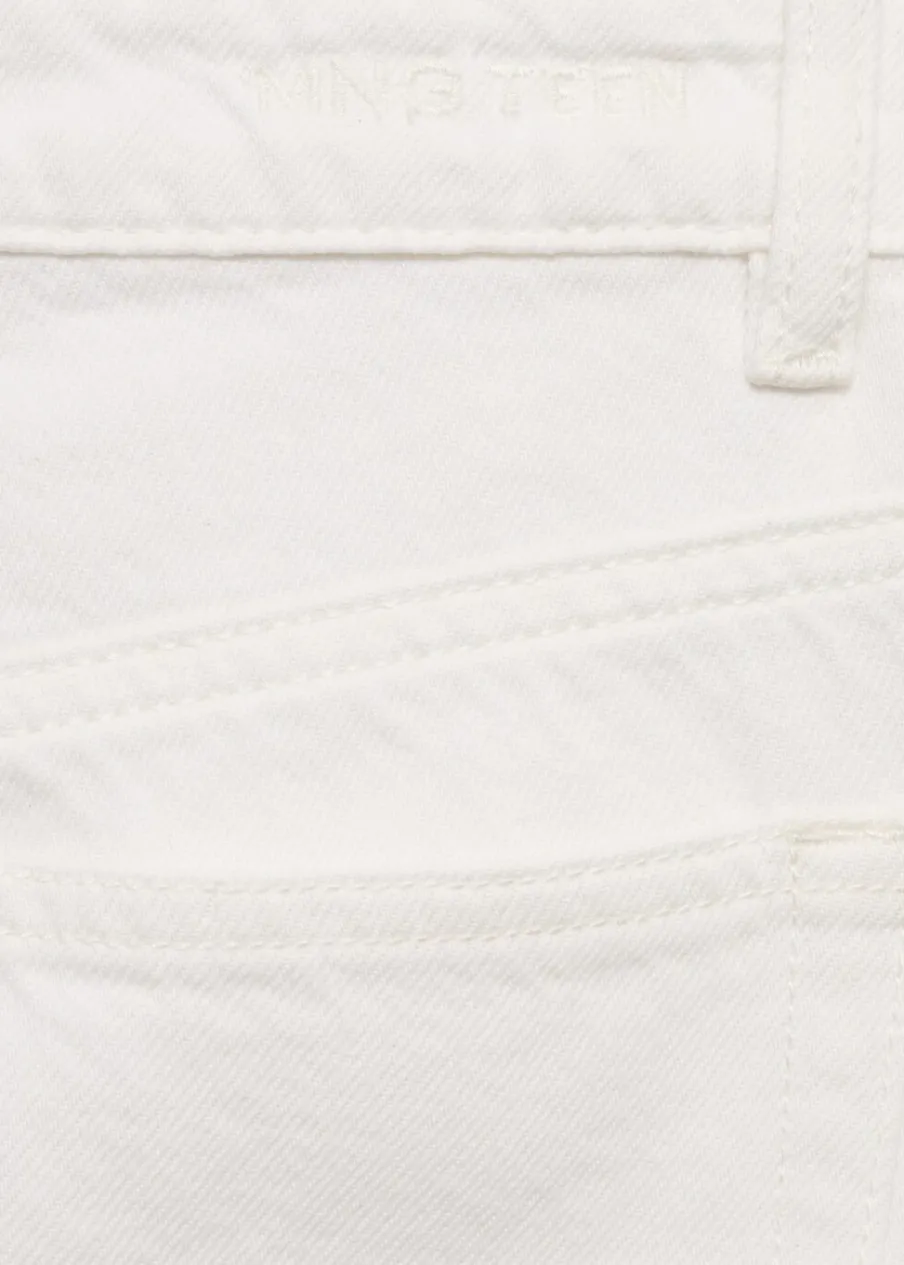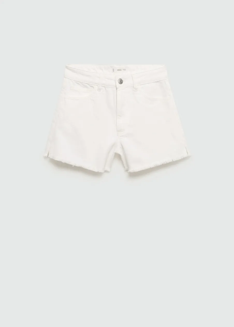 Tkanina bawełniana w dżinsowym stylu. Krótki krój. Model prosty. Postrzępione nogawki. Pięć kieszeni. Zapięcie na suwak i guzik. Modelka ma 172 cm wzrostu i nosi rozmiar M.