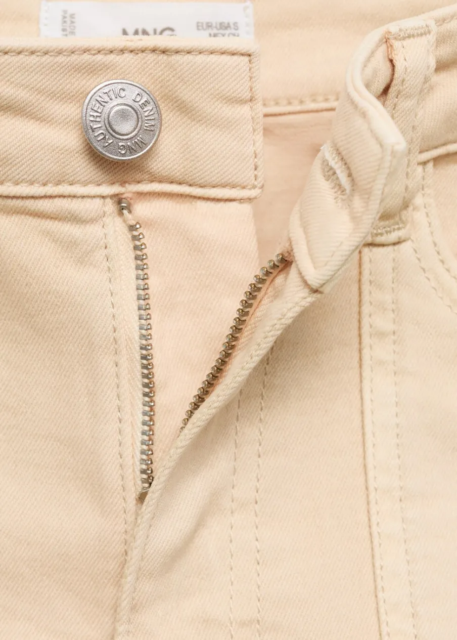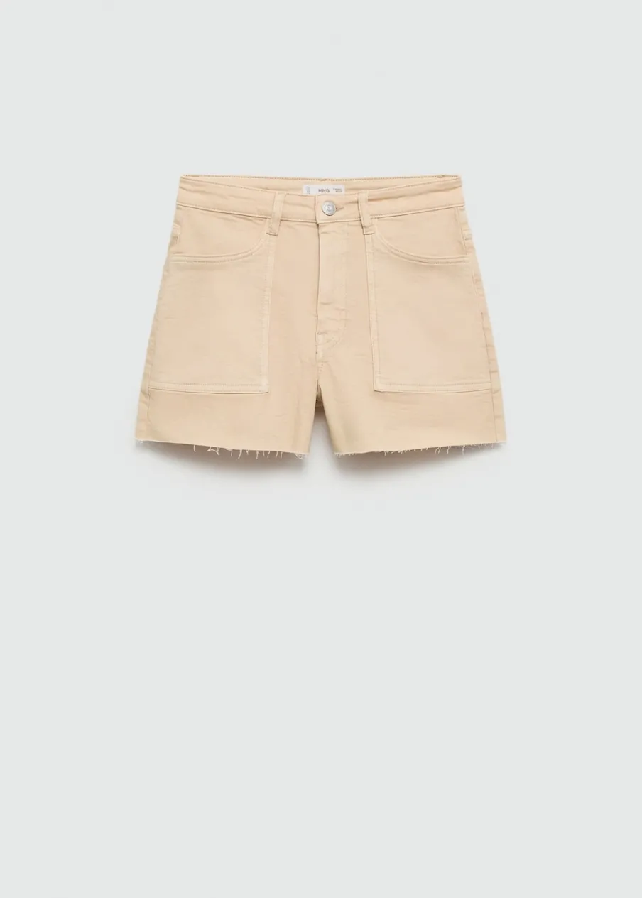 Tkanina bawełniana. Model prosty. Krótki krój. Średni stan. Dwie kieszenie z przodu. Zapięcie na suwak i guzik.