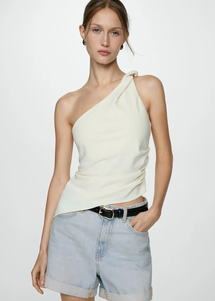 OpisTkanina bawełniana w dżinsowym stylu. Krótki krój. Mom-fit. Podwyższony stan. Szlufki. Pięć kieszeni. Zapięc…