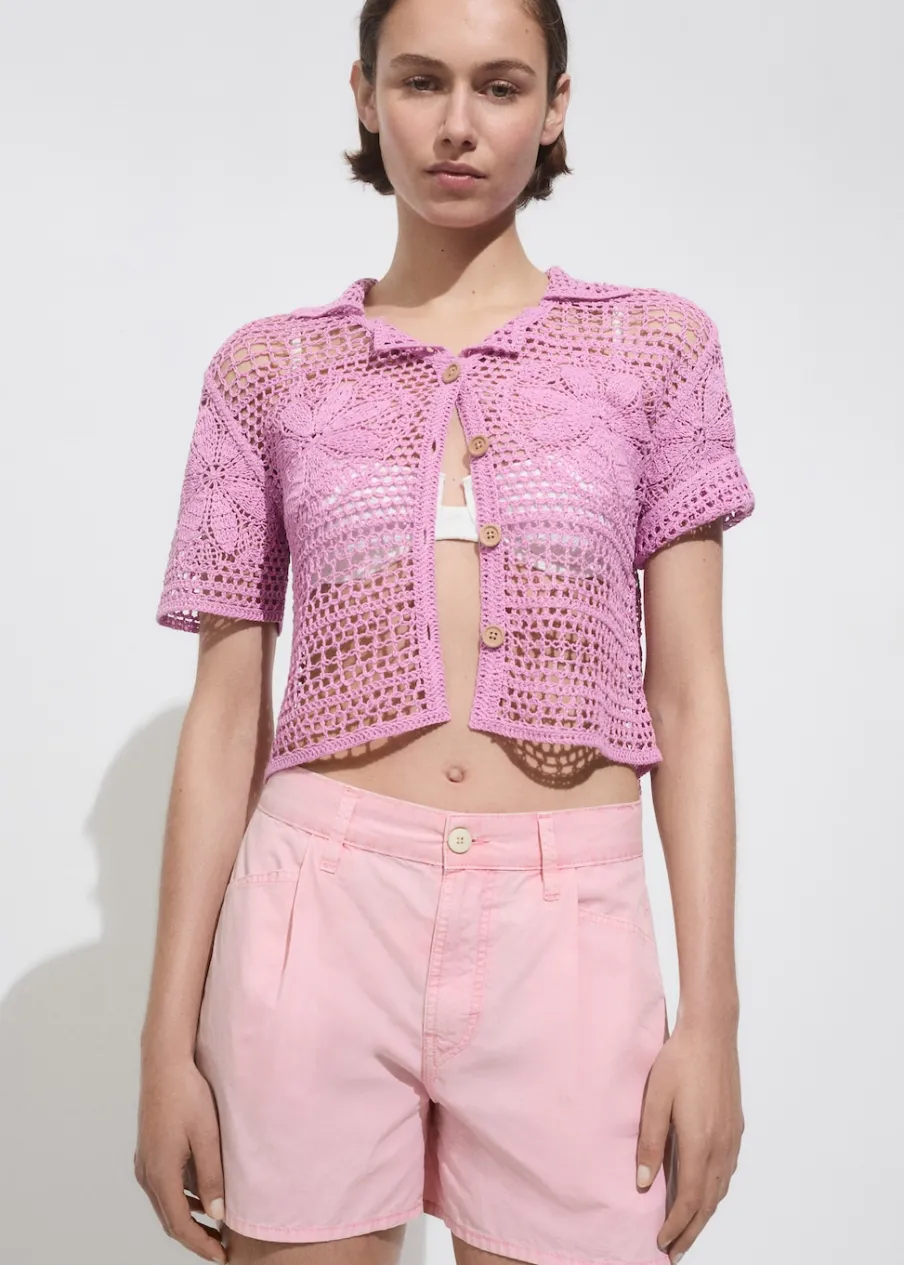 OpisTkanina bawełniana w dżinsowym stylu. Krótki krój. Model prosty. Średni stan. Dwie kieszenie z przodu. Dwie kie…