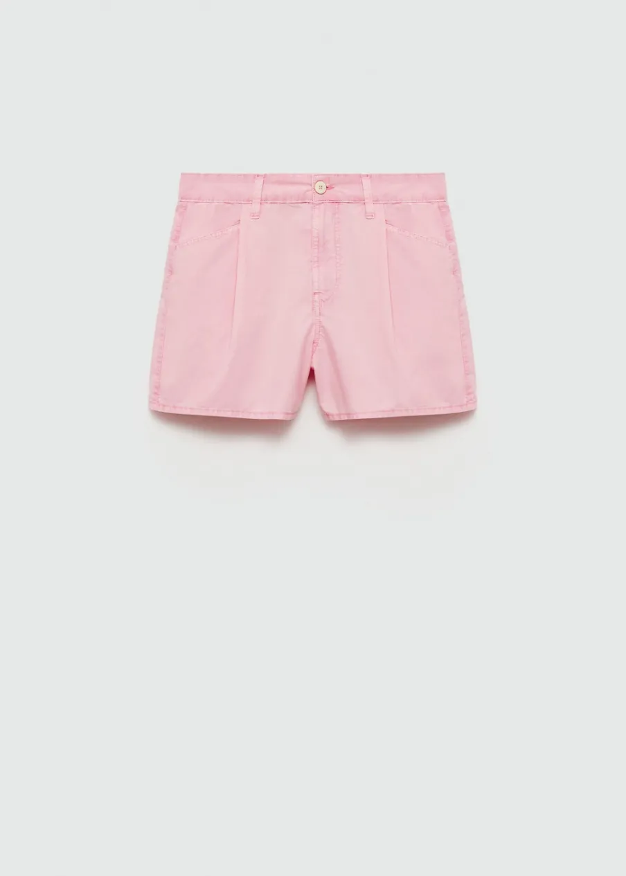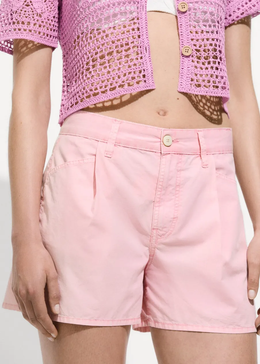 Tkanina bawełniana w dżinsowym stylu. Krótki krój. Model prosty. Średni stan. Dwie kieszenie z przodu. Dwie kieszenie nakładane z tyłu. Szlufki. Zapięcie na zamek i guzik z przodu.