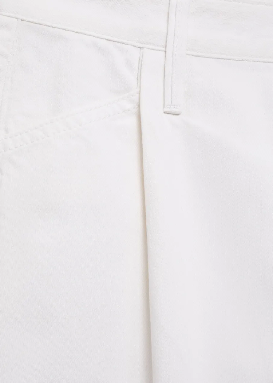Tkanina bawełniana w dżinsowym stylu. Model prosty. Krótki krój. Dwie kieszenie z przodu. Dwie kieszenie nakładane z tyłu. Szlufki. Detal z zakładkami. Postrzępione nogawki. Zapięcie na zamek i guzik z przodu.