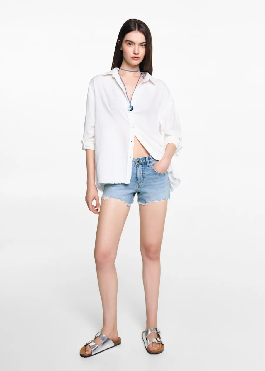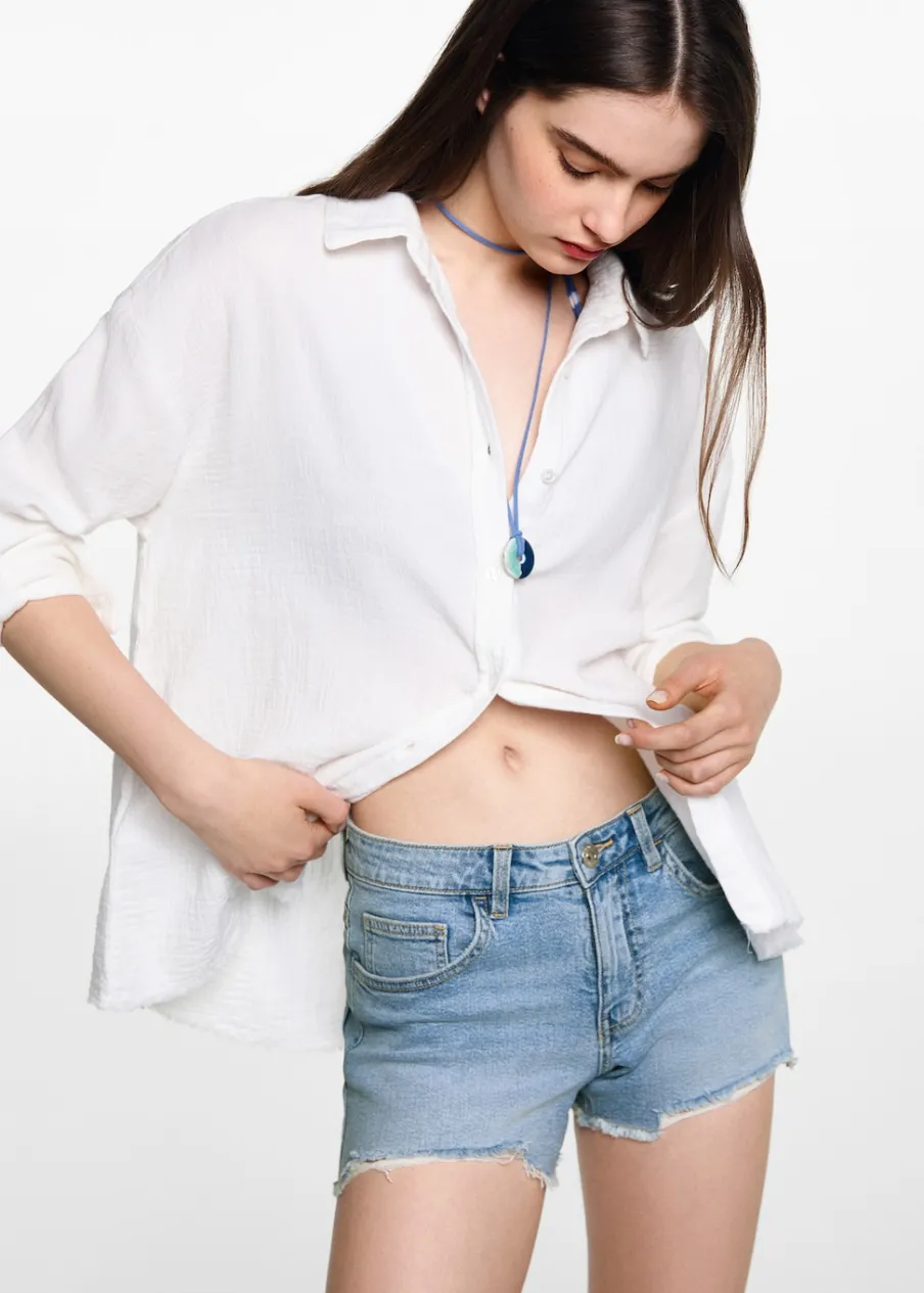 OpisTkanina bawełniana w dżinsowym stylu. Krótki krój. Średni stan. Pięć kieszeni. Zapięcie na suwak i guzik. Mo…