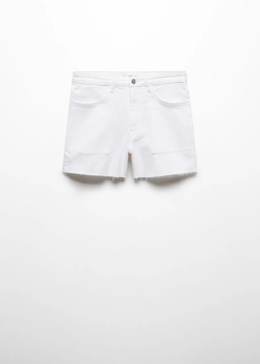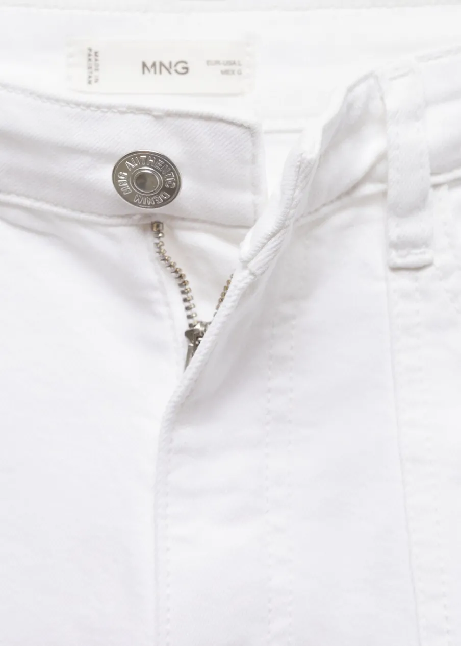 OpisTkanina bawełniana w dżinsowym stylu. Krótki krój. Model prosty. Średni stan. Zapięcie na suwak i guzik.