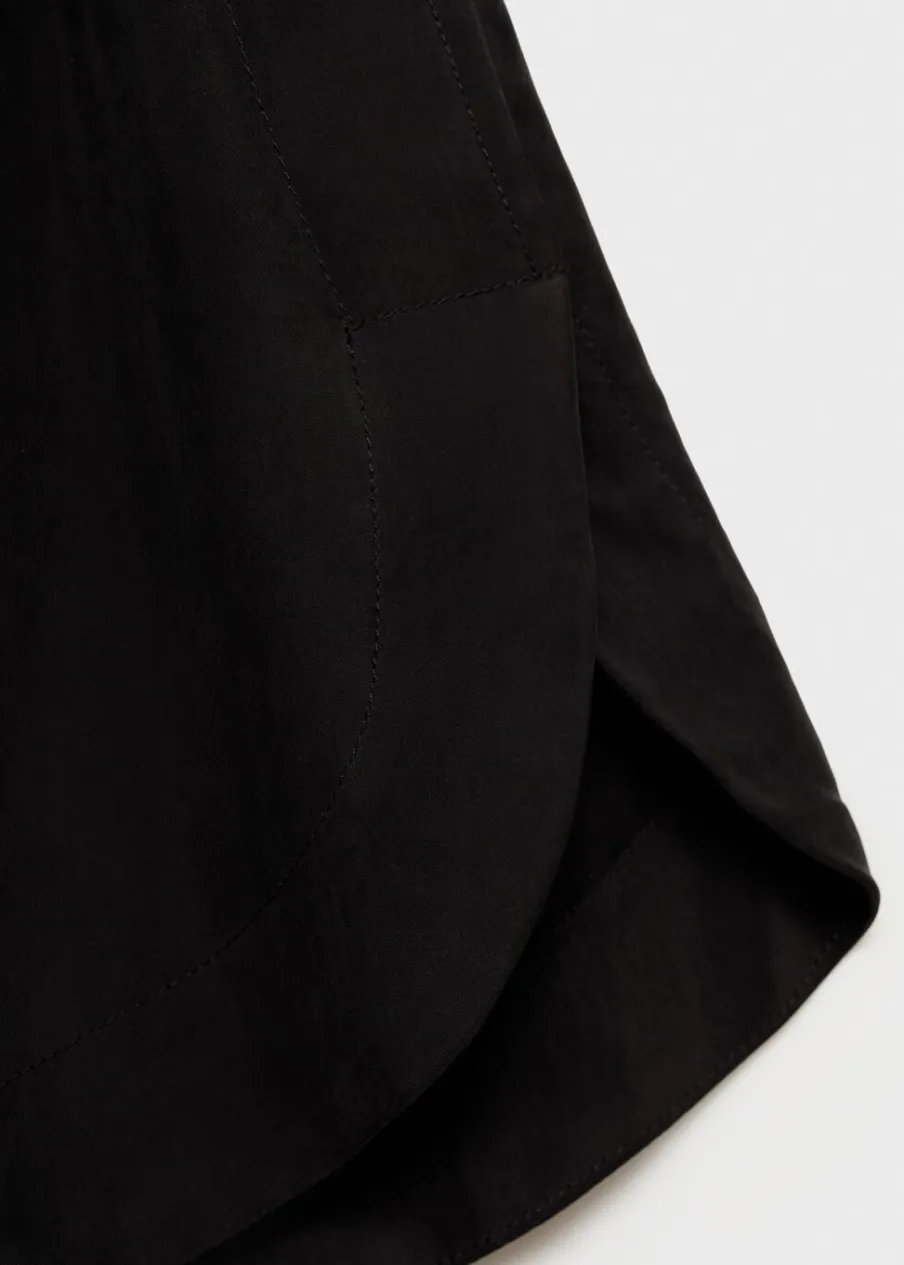 OpisTkanina z mieszanki włókna cupro. Krótki krój. Model prosty. Dwie kieszenie boczne. Elastyczny pas z wiązanym z…