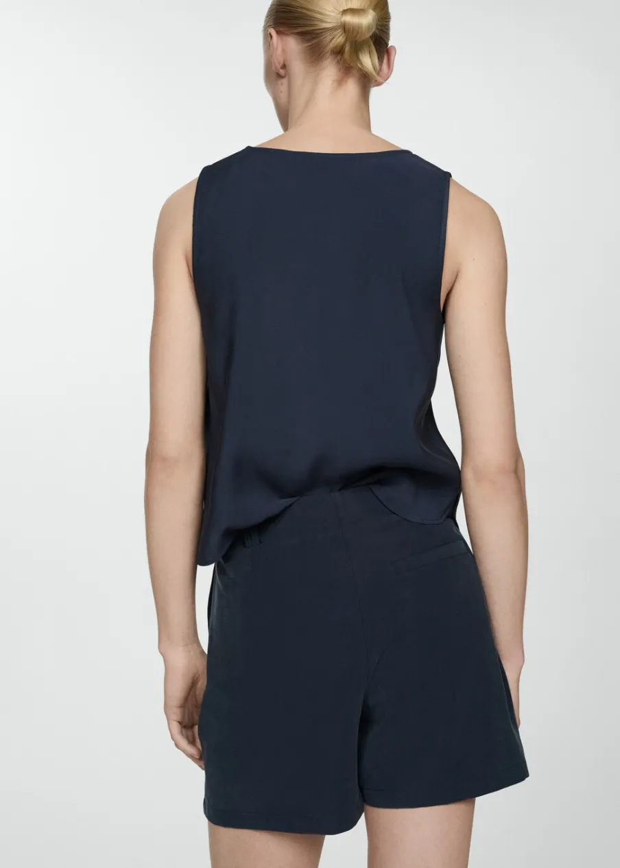 OpisLejąca tkanina. Model prosty. Krótki krój. Średni stan. Szlufki. Dwie kieszenie boczne. Kryte zapięcie na guzik…