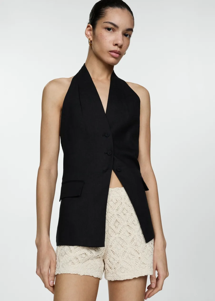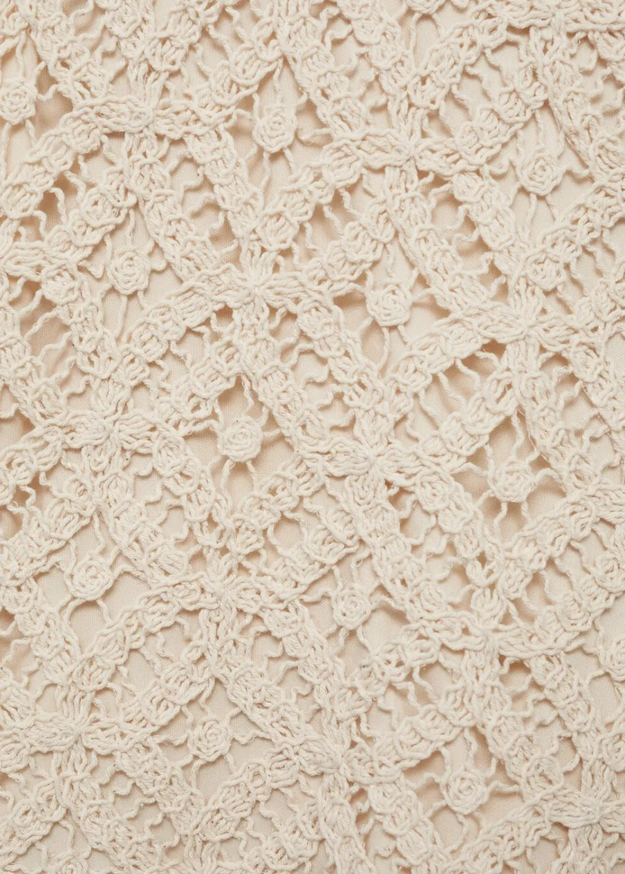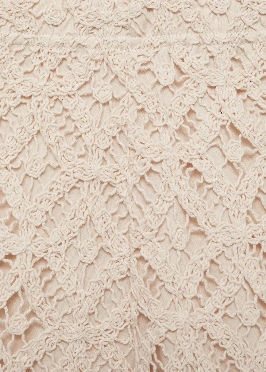 Tkanina mieszanka bawełny. Krótki krój. Model prosty. Bez zapięcia. Wewnętrzna podszewka. Total look. Szydełkowa tkanina.
