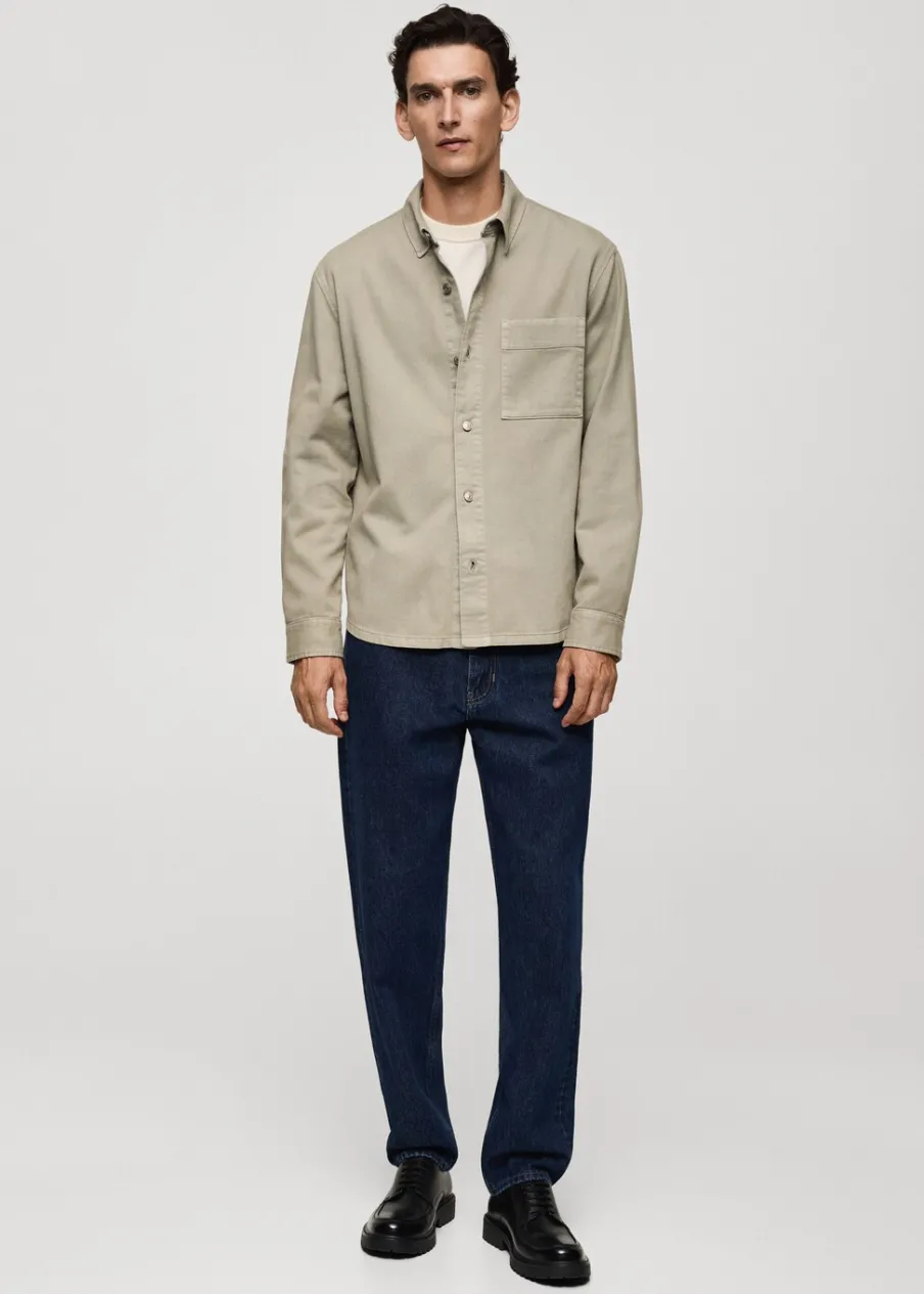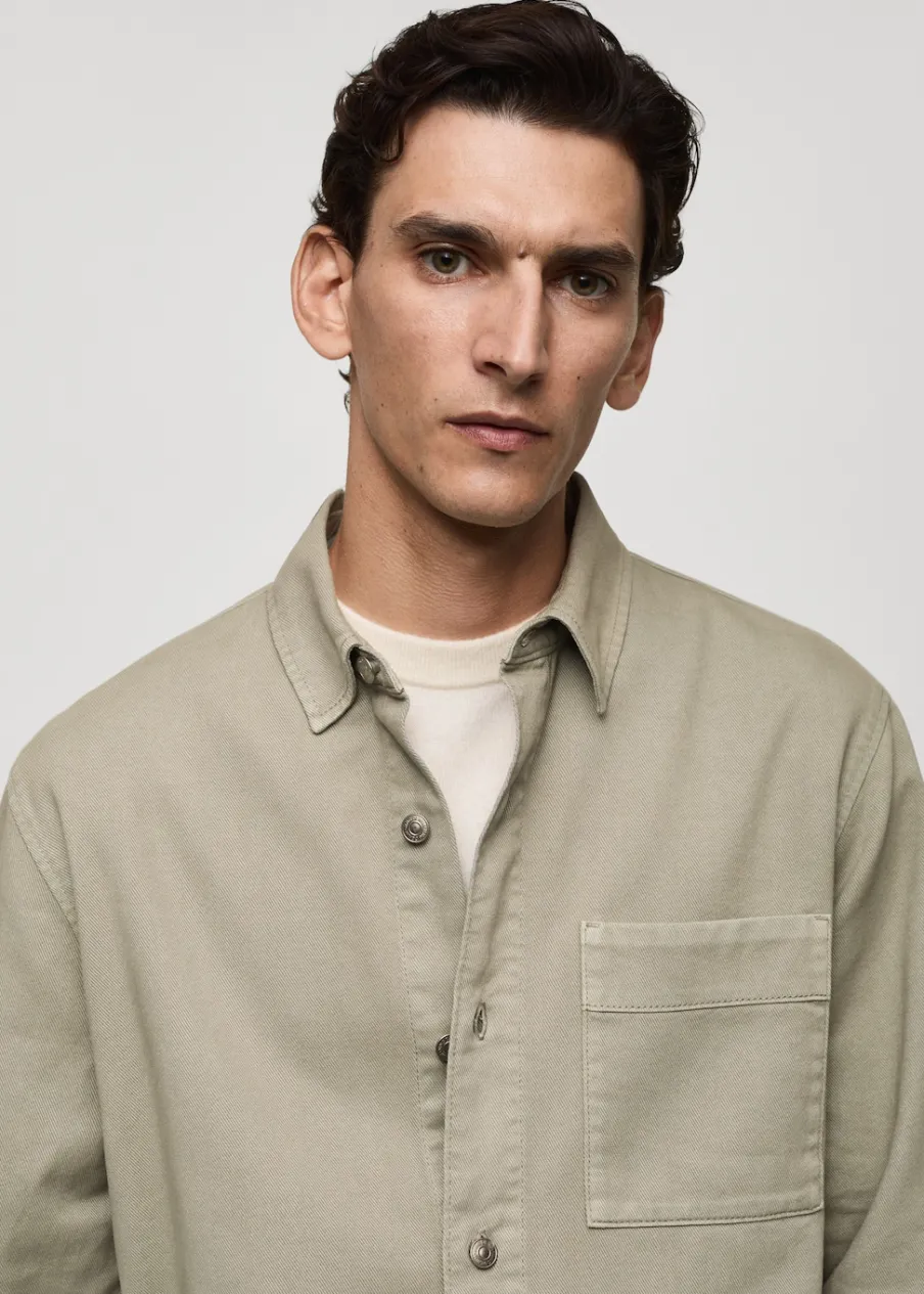 Slim-fit. Bawełna 100%. Zapięcie na metalowe guziki z przodu. Kieszeń nakładana na piersi. Model ma 190 cm wzrostu i nosi rozmiar M. Długi rękaw z zapięciem na guziki. Zaokrąglony dół. Klasyczny kołnierzyk.