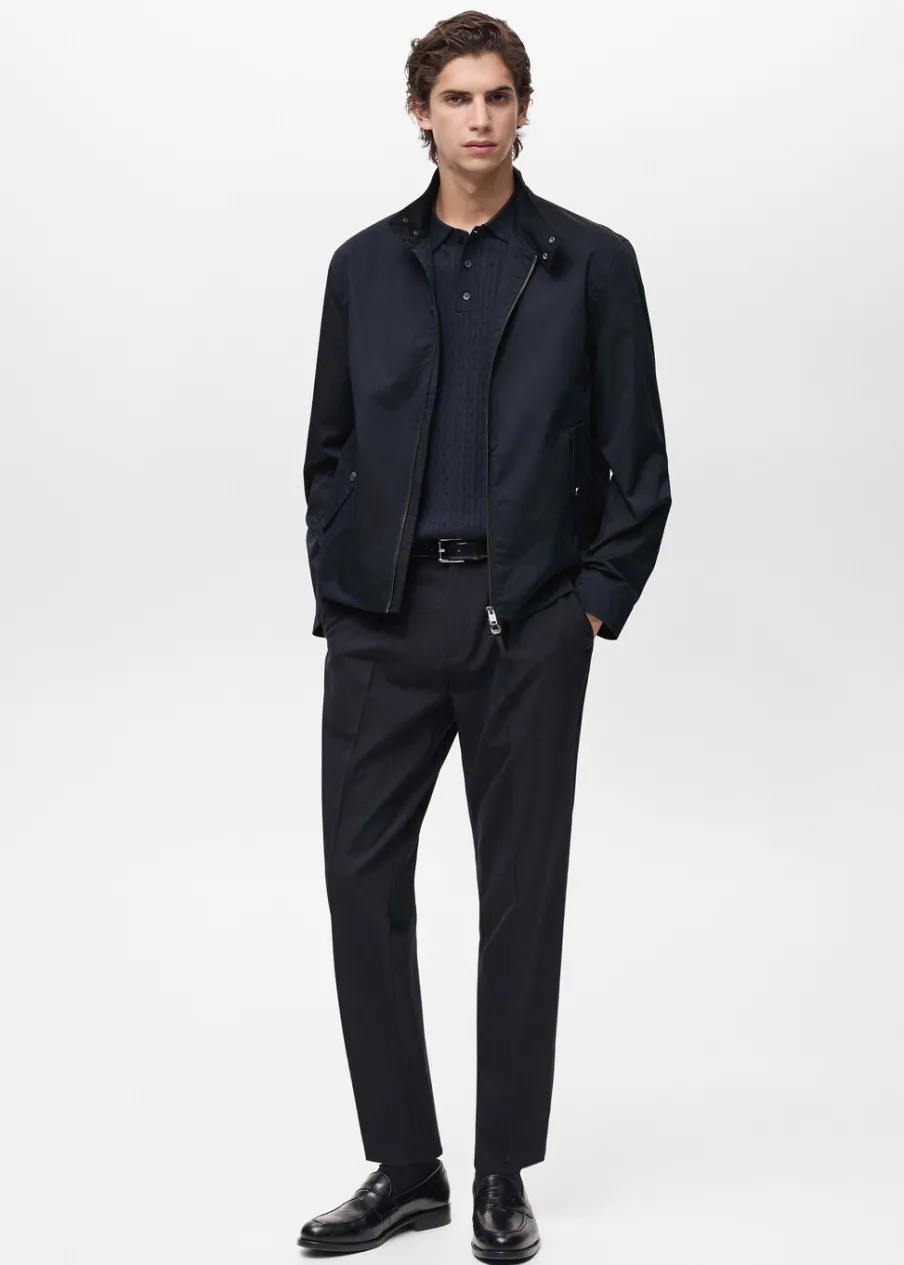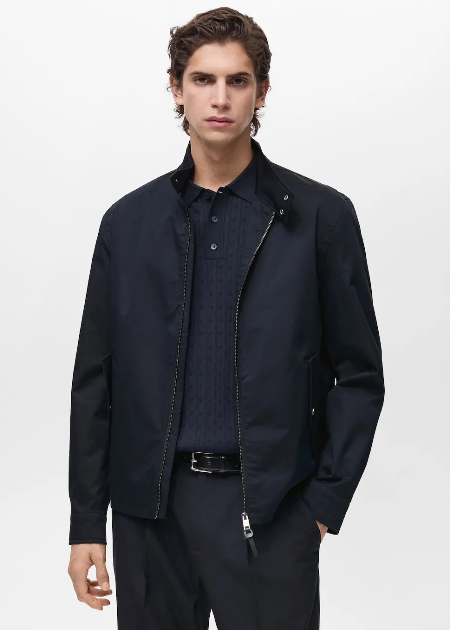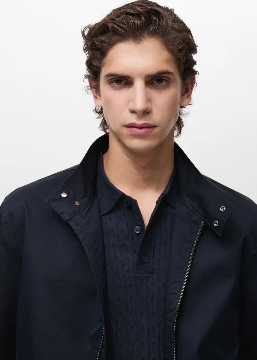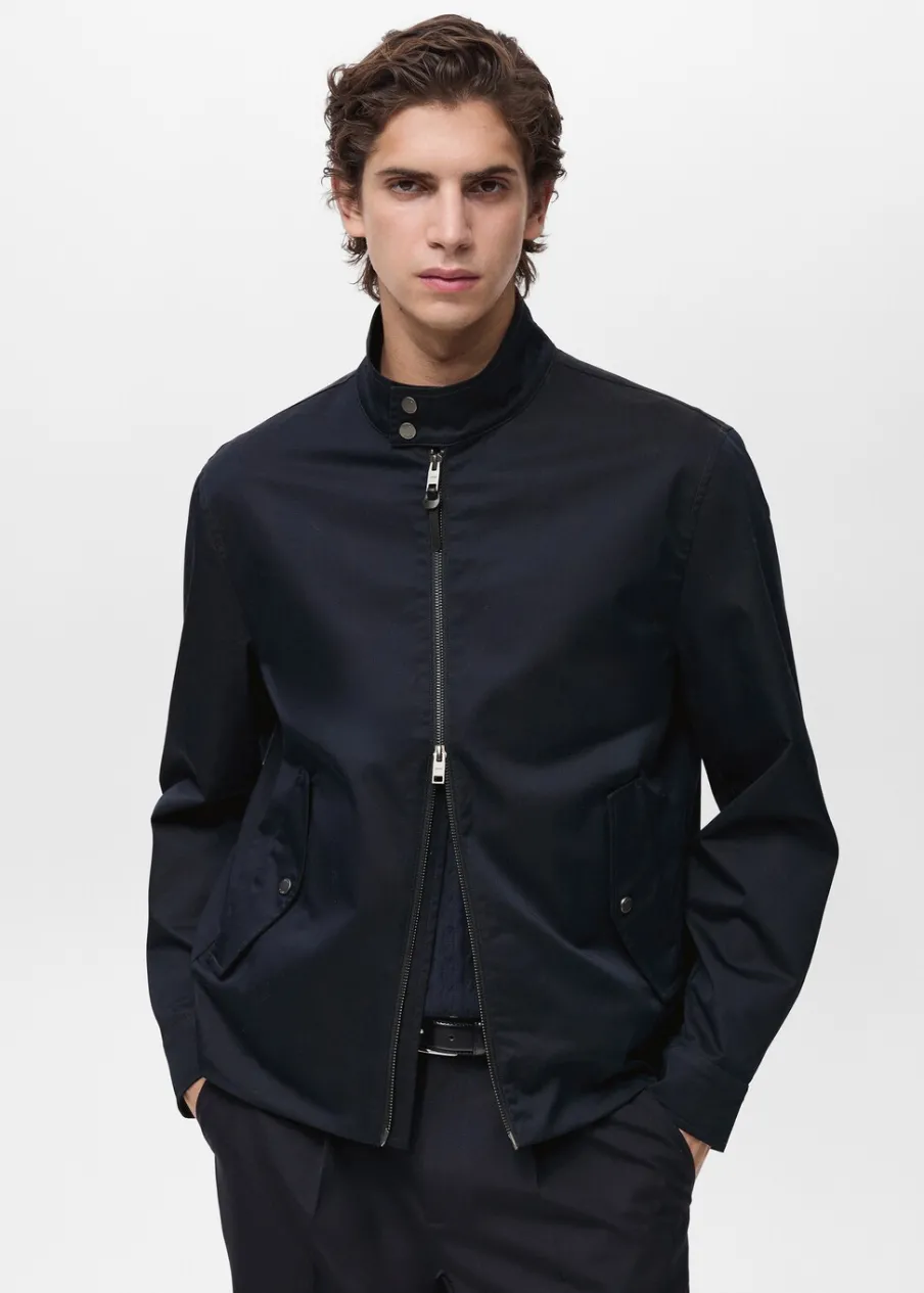 ESSENTIALS: Made to last. Kolor brązowy dostępny tylko online. Water Repellent: trwałe wykończenie tego modelu chroni przed lekkim deszczem, odpycha cząsteczki wody i krople deszczu. Tkanina mieszanka bawełny. Kołnierz typu komin z zapięciem na zatrzaski. Zapięcie na zamek z przodu. Dwie wpuszczane kieszenie z patkami z przodu. Długi rękaw z elastycznymi mankietami. Prosty dół. Częściowa podszewka. Wewnętrzna kieszeń. Model ma 190 cm wzrostu i nosi rozmiar M.