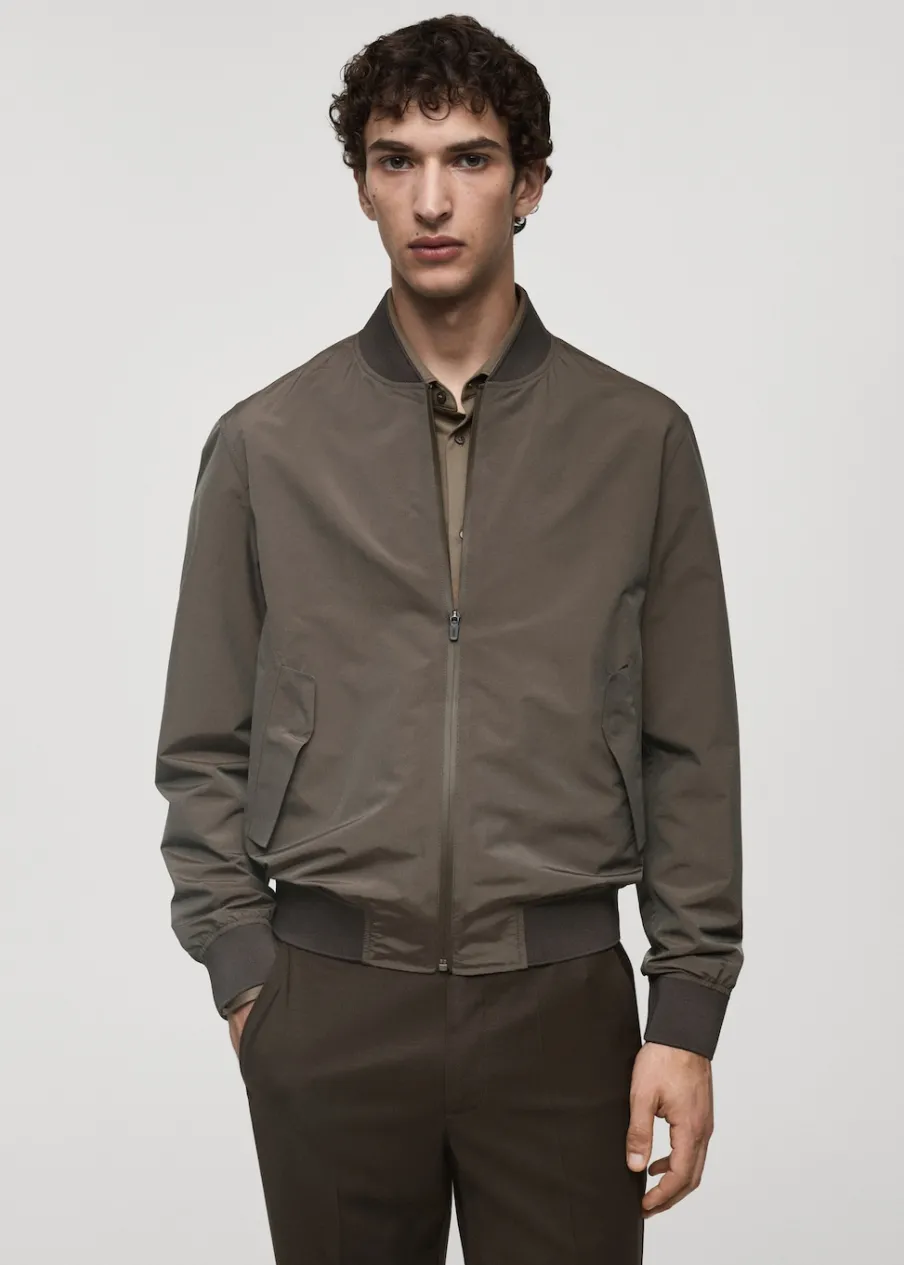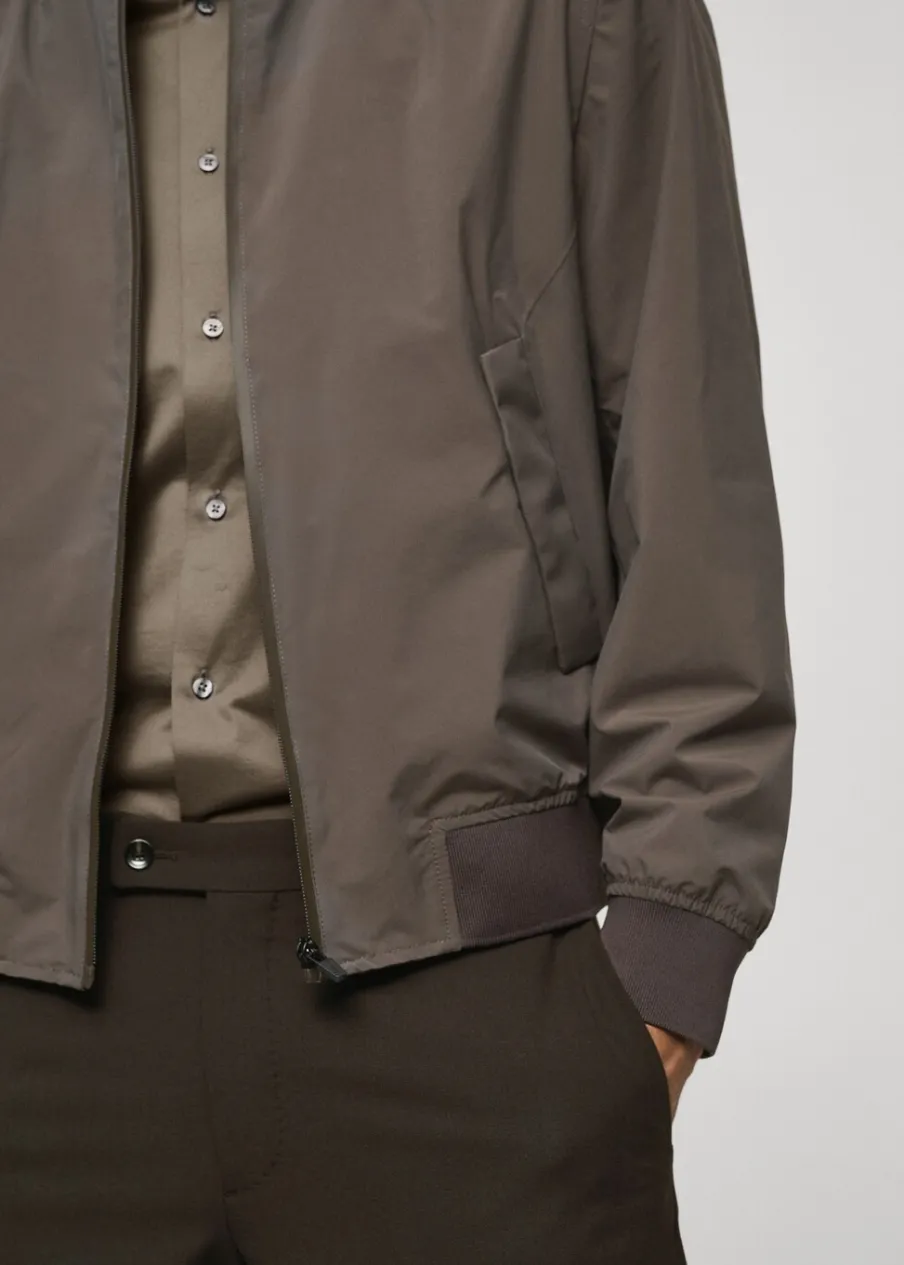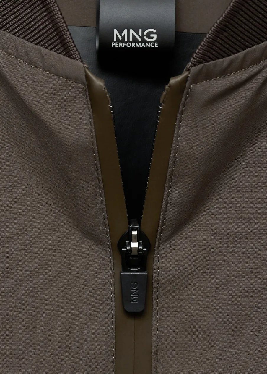 Kolekcja Performance. Comfort stretch: elastyczna tkanina dla większego komfortu. Krój regular. Prążkowany kołnierzyk typu bomber. Długi rękaw z elastycznymi mankietami. Prosty dół z prążkowanym wykończeniem. Kieszenie wewnętrzne. Model ma 190 cm wzrostu i nosi rozmiar M. Termoregulacyjna: ta tkanina zapewnia optymalną przepuszczalność powietrza, by utrzymać stałą temperaturę ciała. Windproof: ten wytrzymały materiał zapewnia ochronę przed wiatrem dla większego komfortu podczas aktywności na świeżym powietrzu. Waterproof: trwałe wykończenie zapobiega przenikaniu wody przez tkaninę, zapewniając najlepszą możliwą ochronę przed deszczem. Funkcjonalne rozwiązania techniczne, takie jak ergonomiczne kieszenie, zapięcia magnetyczne i wodoodporne zapięcie z przodu. Wodoodporne zapięcie na zamek z przodu. Dwie kieszenie z patkami z przodu z zapięciem na magnes. Komfort: to ubranie zapewnia pełną swobodę ruchu i odzyskuje swój pierwotny kształt.