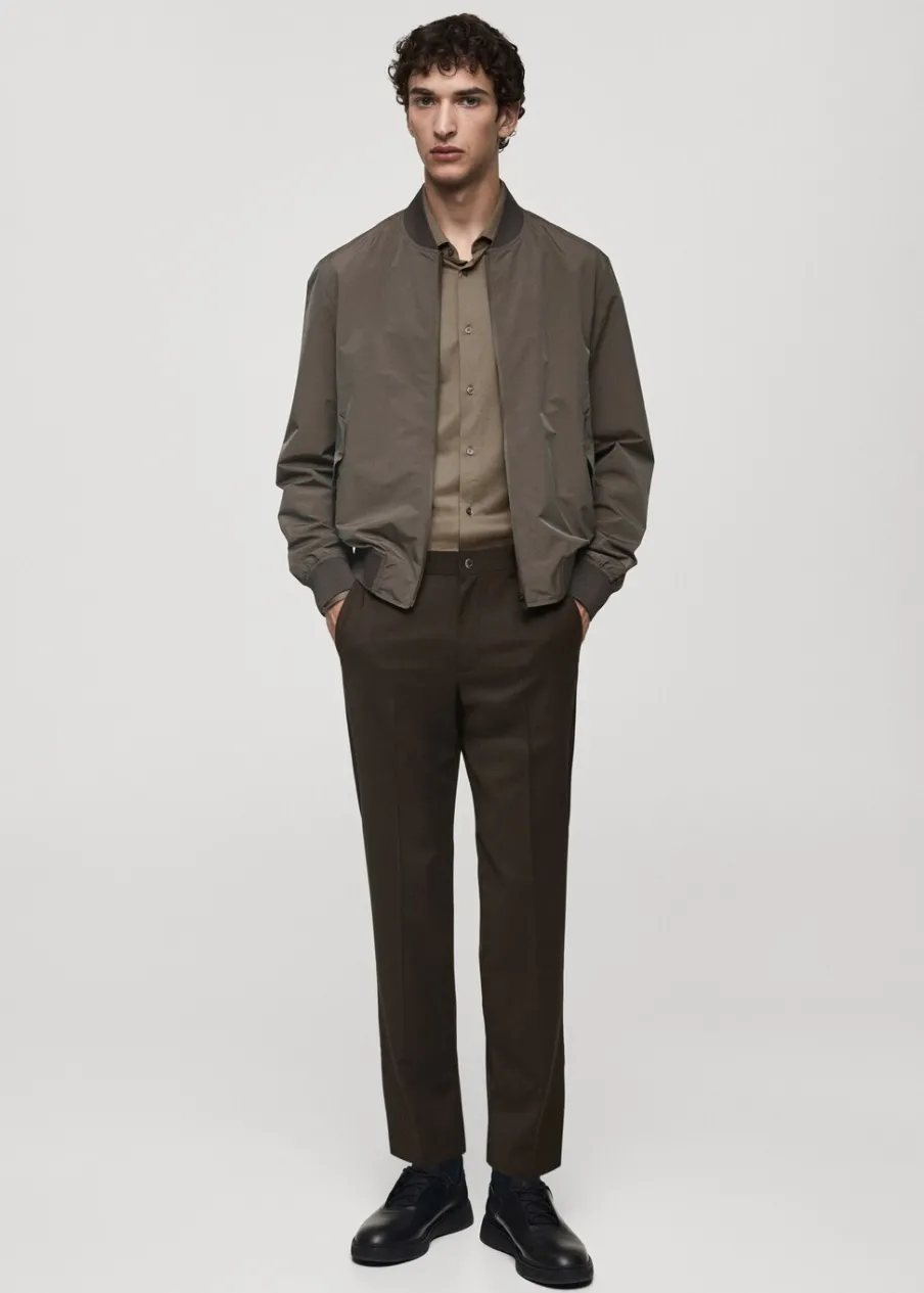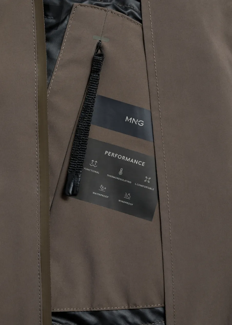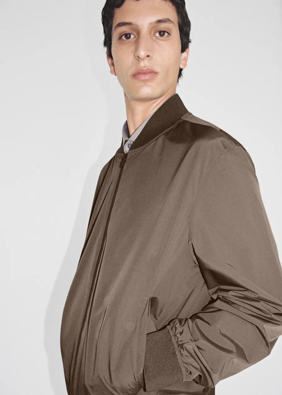 Kolekcja Performance. Comfort stretch: elastyczna tkanina dla większego komfortu. Krój regular. Prążkowany kołnierzyk typu bomber. Długi rękaw z elastycznymi mankietami. Prosty dół z prążkowanym wykończeniem. Kieszenie wewnętrzne. Model ma 190 cm wzrostu i nosi rozmiar M. Termoregulacyjna: ta tkanina zapewnia optymalną przepuszczalność powietrza, by utrzymać stałą temperaturę ciała. Windproof: ten wytrzymały materiał zapewnia ochronę przed wiatrem dla większego komfortu podczas aktywności na świeżym powietrzu. Waterproof: trwałe wykończenie zapobiega przenikaniu wody przez tkaninę, zapewniając najlepszą możliwą ochronę przed deszczem. Funkcjonalne rozwiązania techniczne, takie jak ergonomiczne kieszenie, zapięcia magnetyczne i wodoodporne zapięcie z przodu. Wodoodporne zapięcie na zamek z przodu. Dwie kieszenie z patkami z przodu z zapięciem na magnes. Komfort: to ubranie zapewnia pełną swobodę ruchu i odzyskuje swój pierwotny kształt.