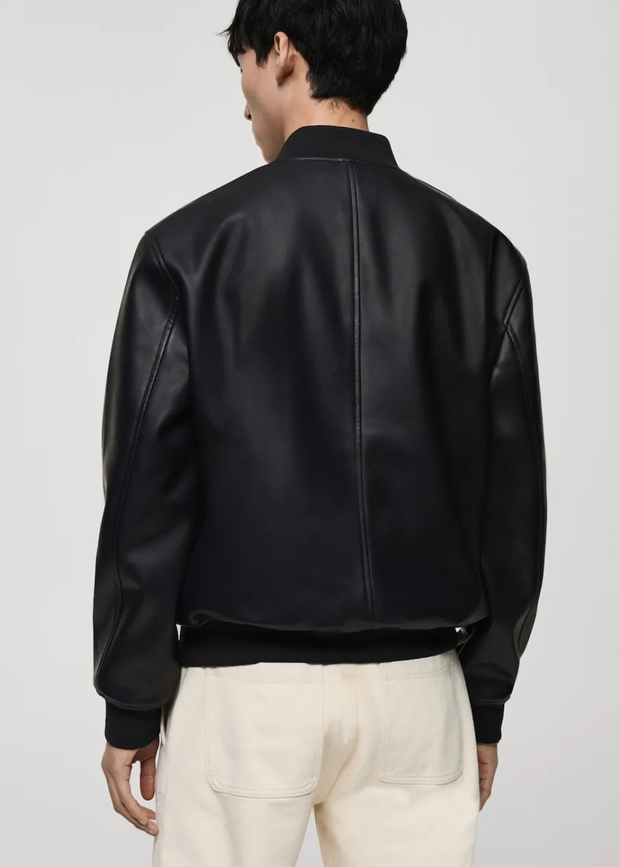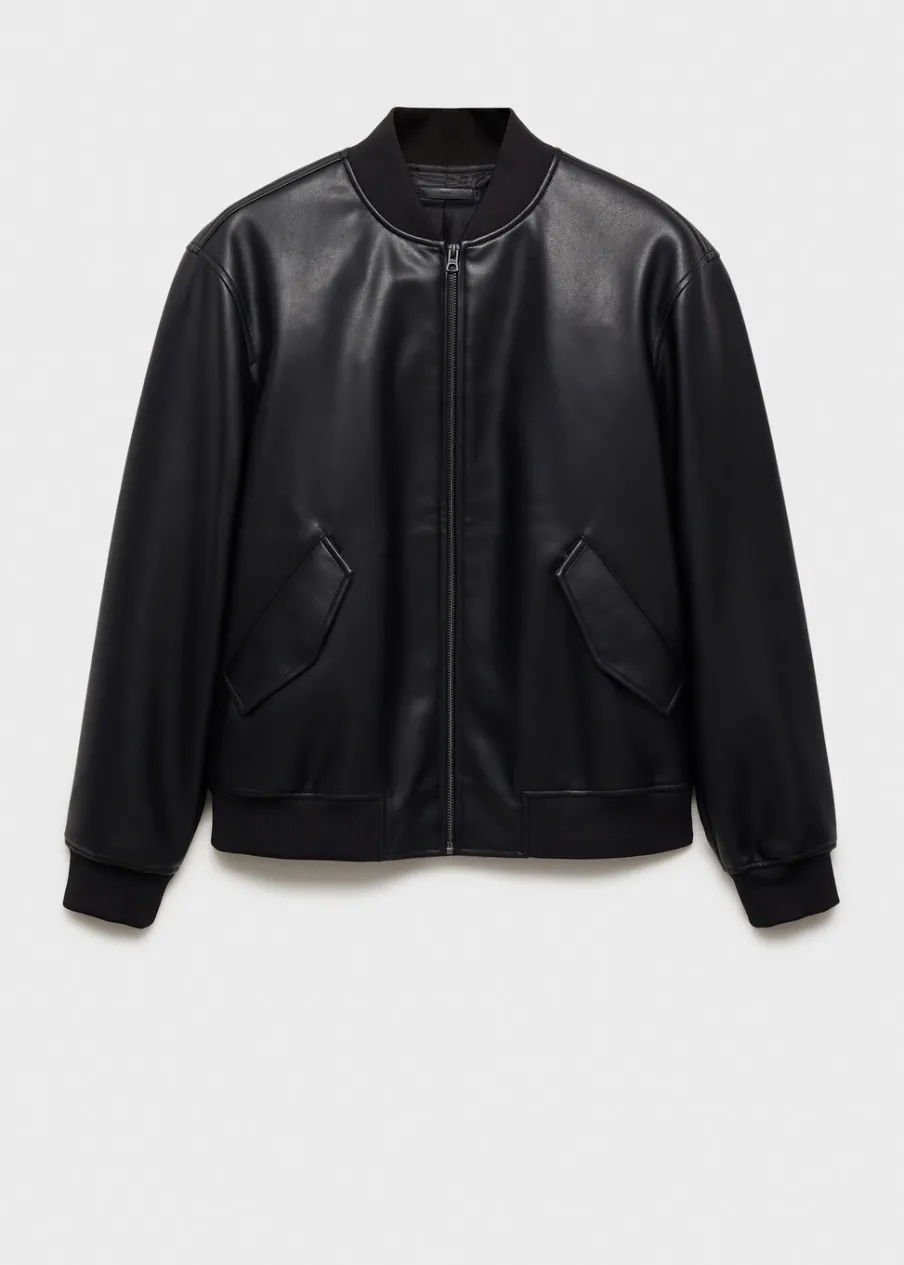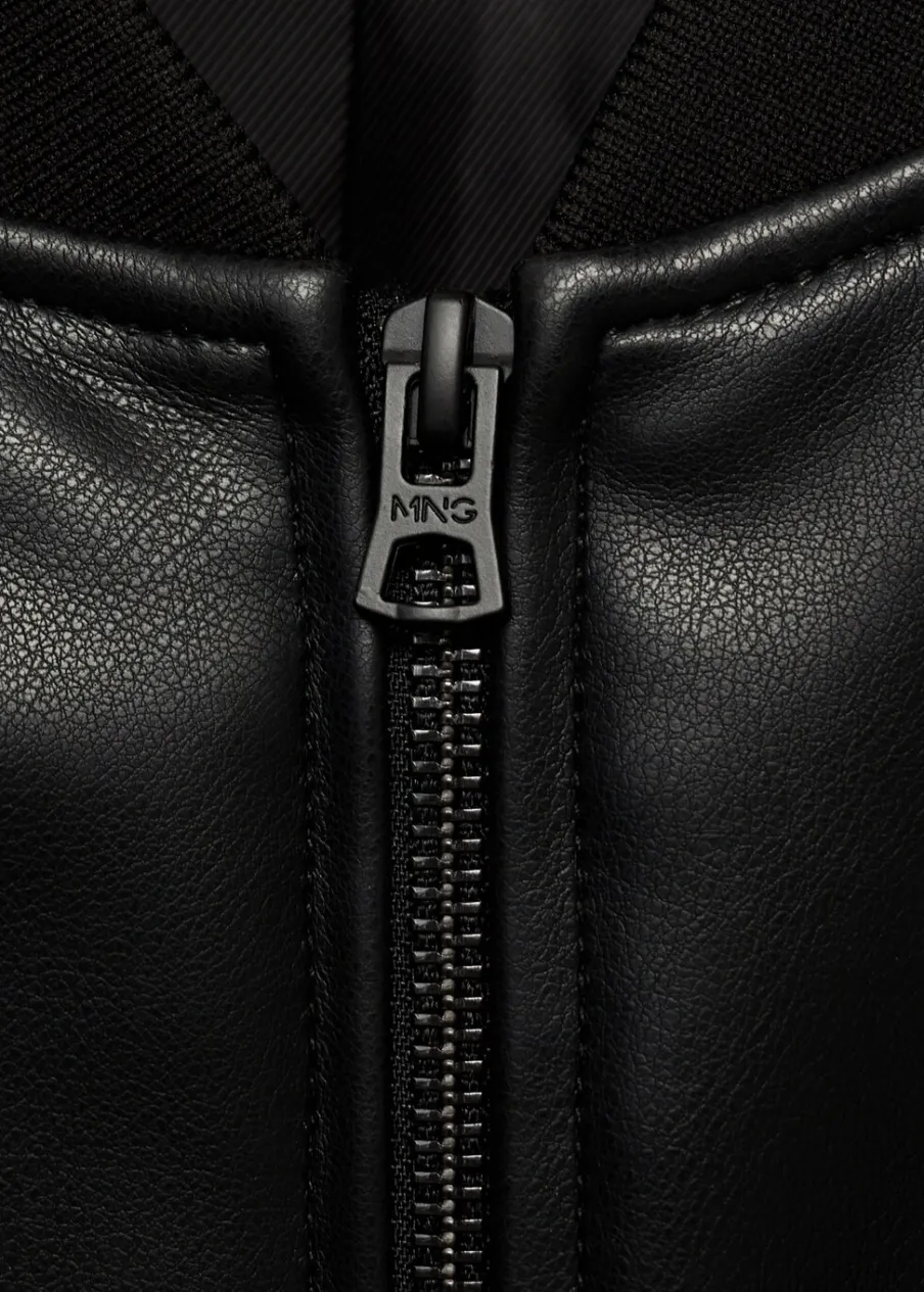OpisModel bomber. Efekt skóry. Kołnierz, mankiety i dół w kontrastowym kolorze. Wewnętrzna podszewka. Dwie kieszeni…