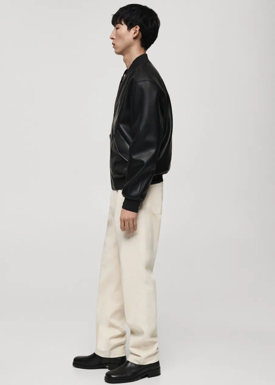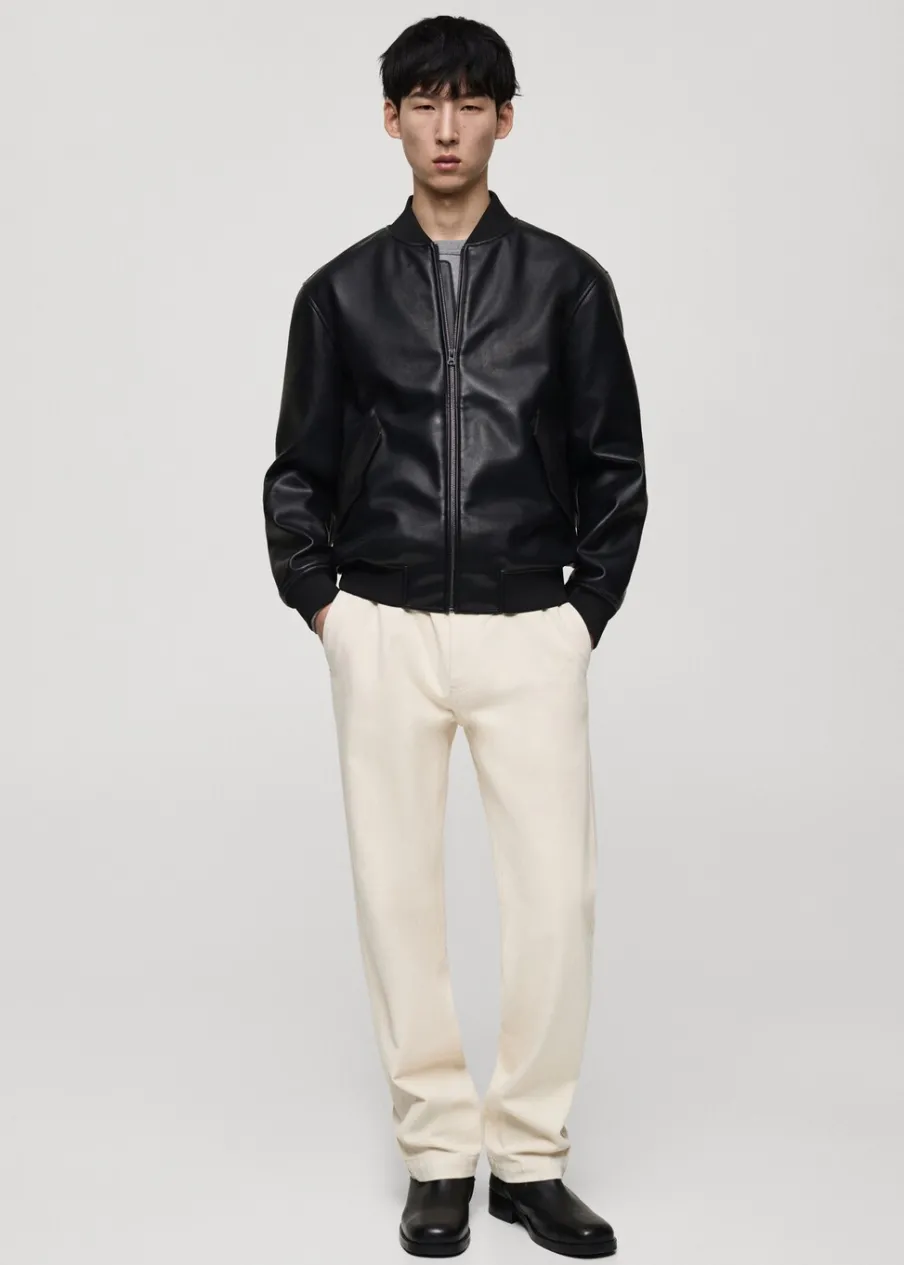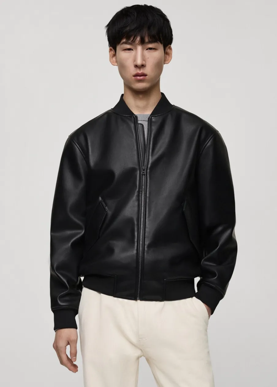 OpisModel bomber. Efekt skóry. Kołnierz, mankiety i dół w kontrastowym kolorze. Wewnętrzna podszewka. Dwie kieszeni…