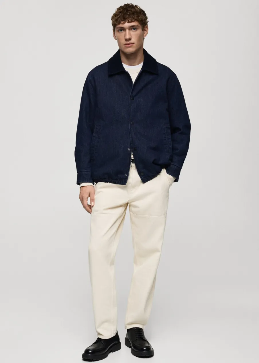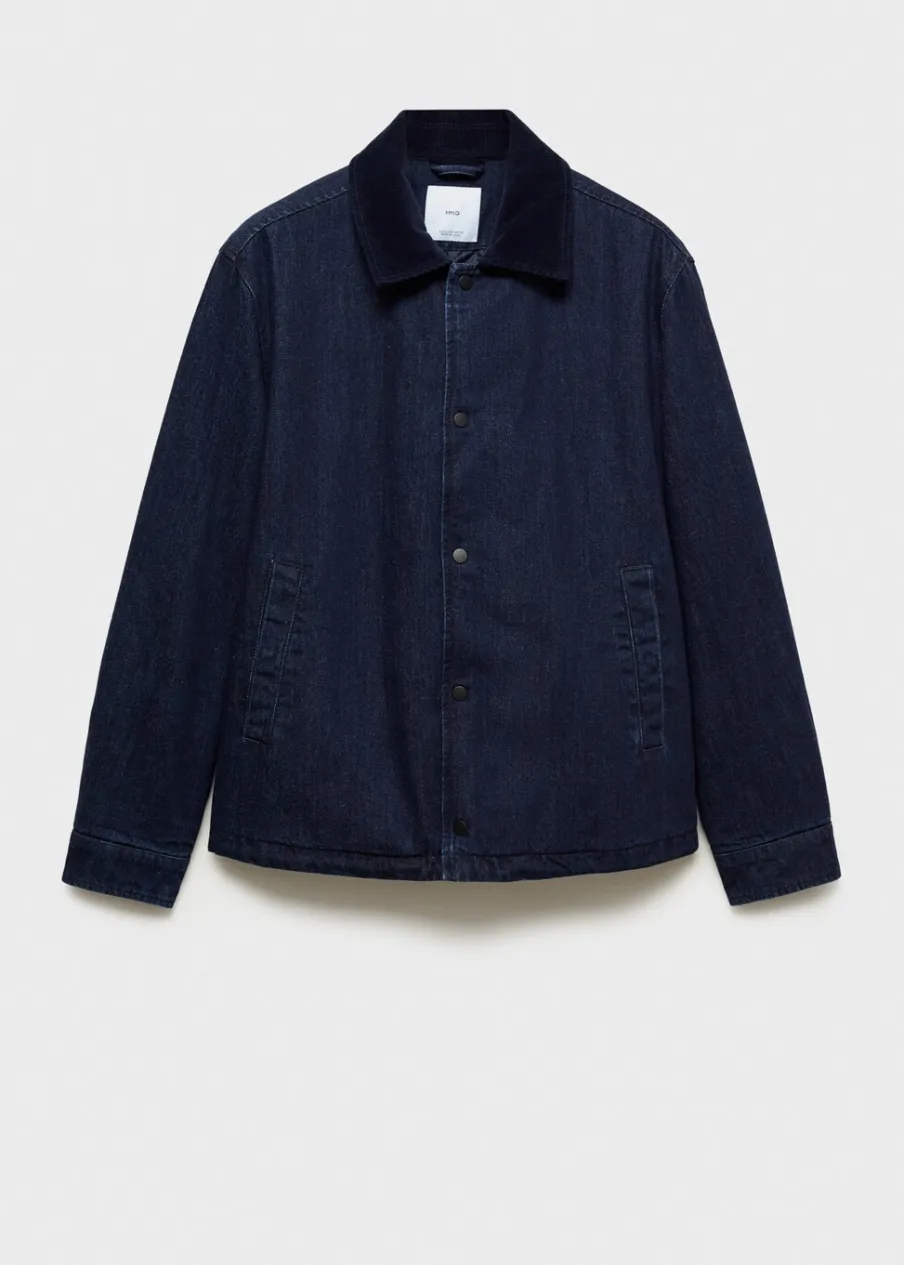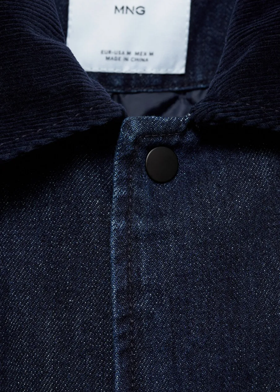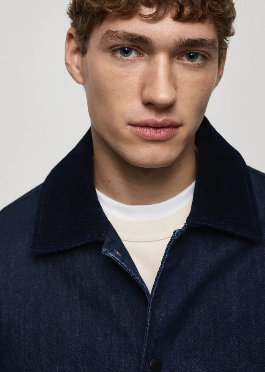 Krój regular. Tkanina z 100% bawełny. Kołnierzyk ze sztruksu. Zapięcie na zatrzaskowe guziki. Zapinane mankiety. Wewnętrzna podszewka. Dwie wpuszczane kieszenie boczne. Model ma 185 cm wzrostu i nosi rozmiar M. Model dżinsowy.