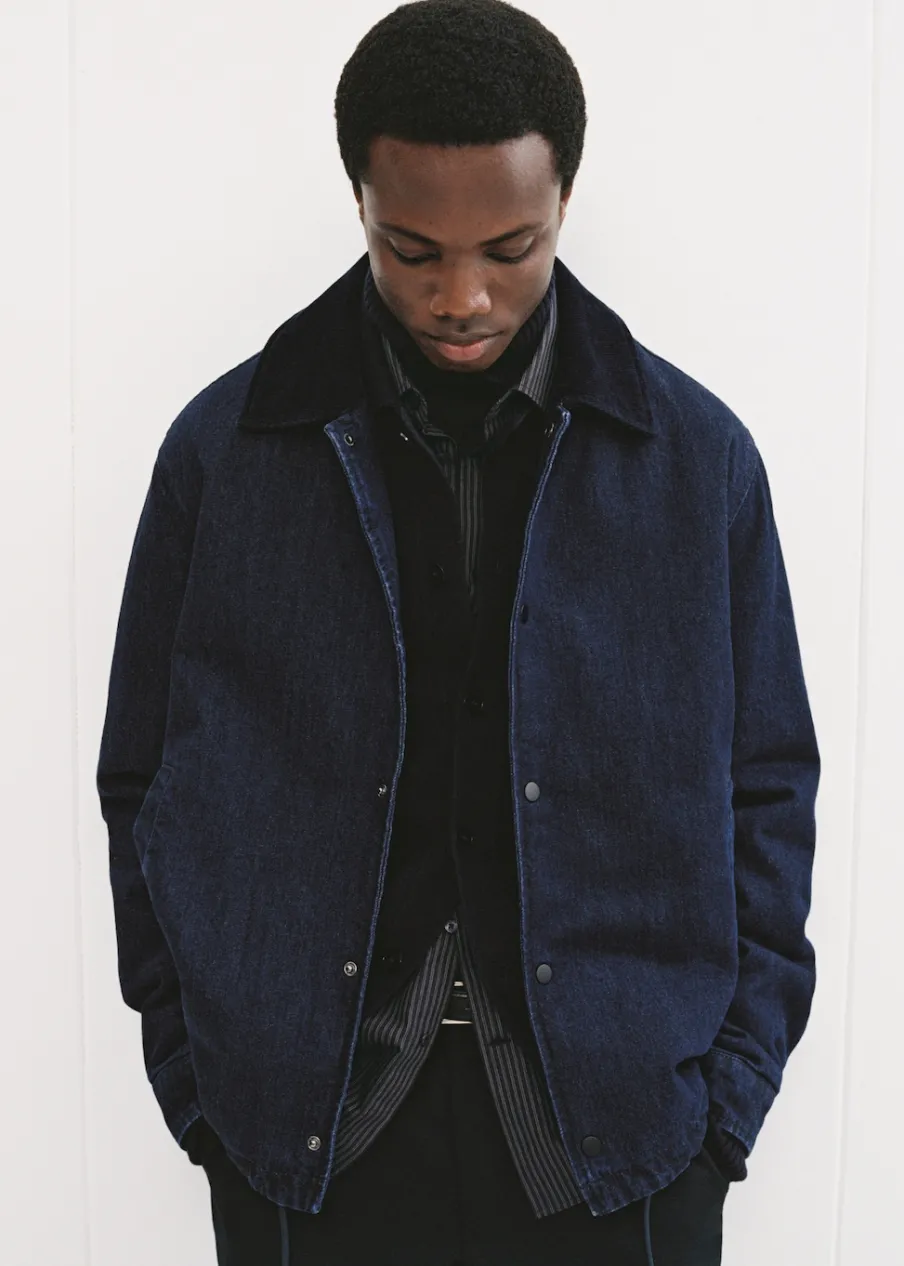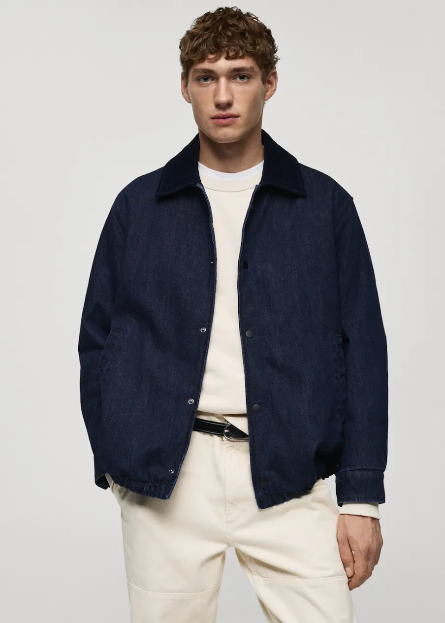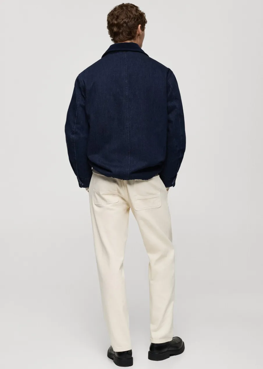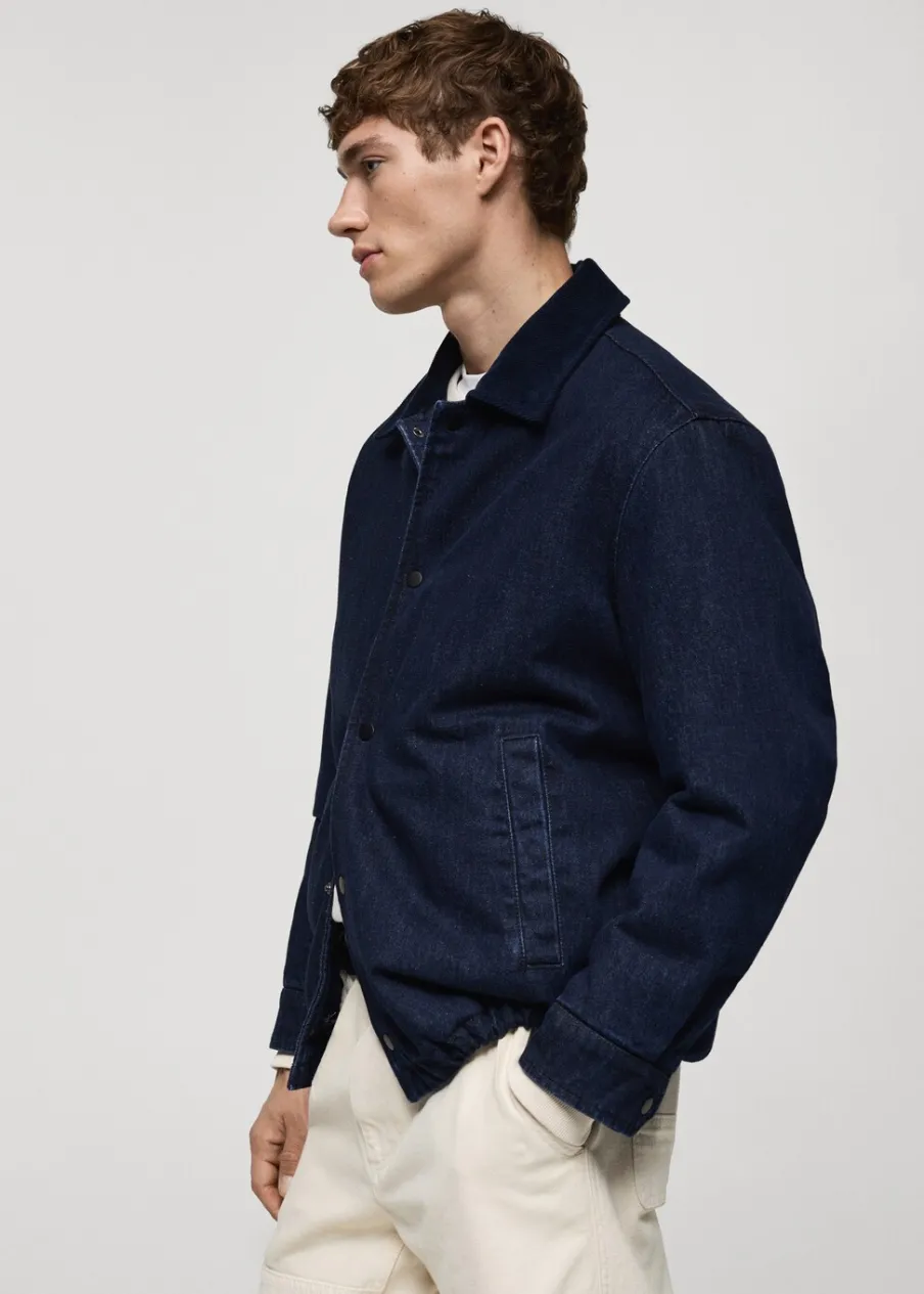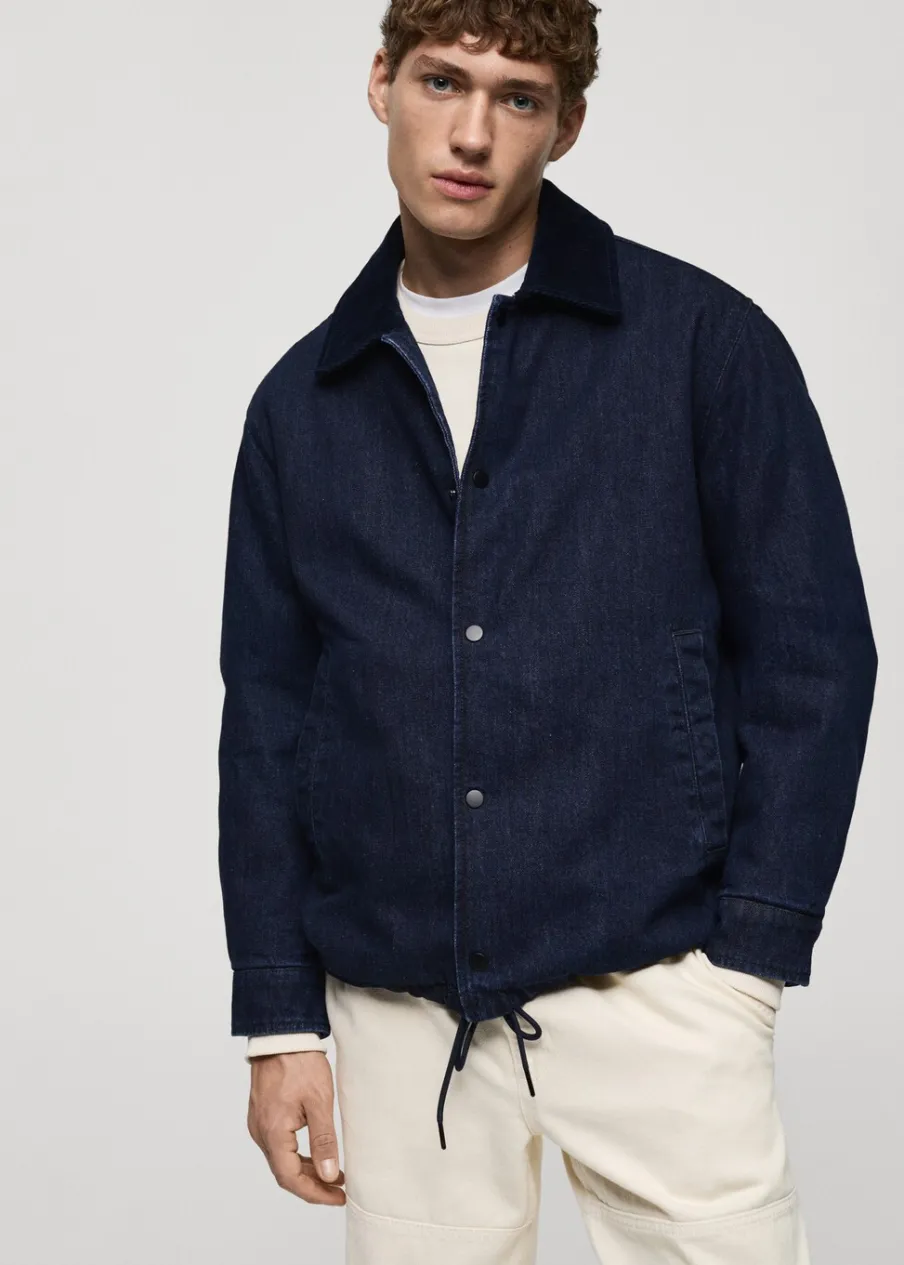 Krój regular. Tkanina z 100% bawełny. Kołnierzyk ze sztruksu. Zapięcie na zatrzaskowe guziki. Zapinane mankiety. Wewnętrzna podszewka. Dwie wpuszczane kieszenie boczne. Model ma 185 cm wzrostu i nosi rozmiar M. Model dżinsowy.