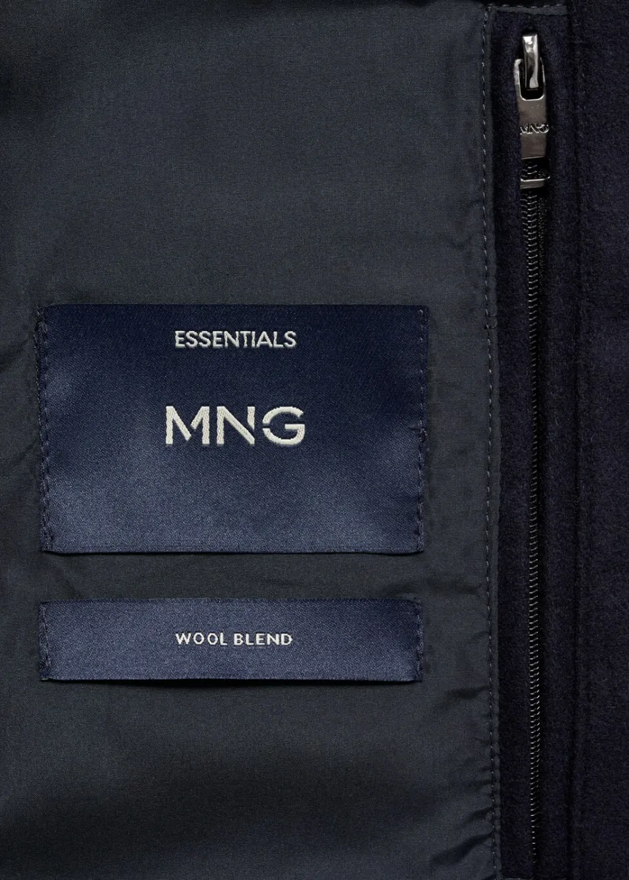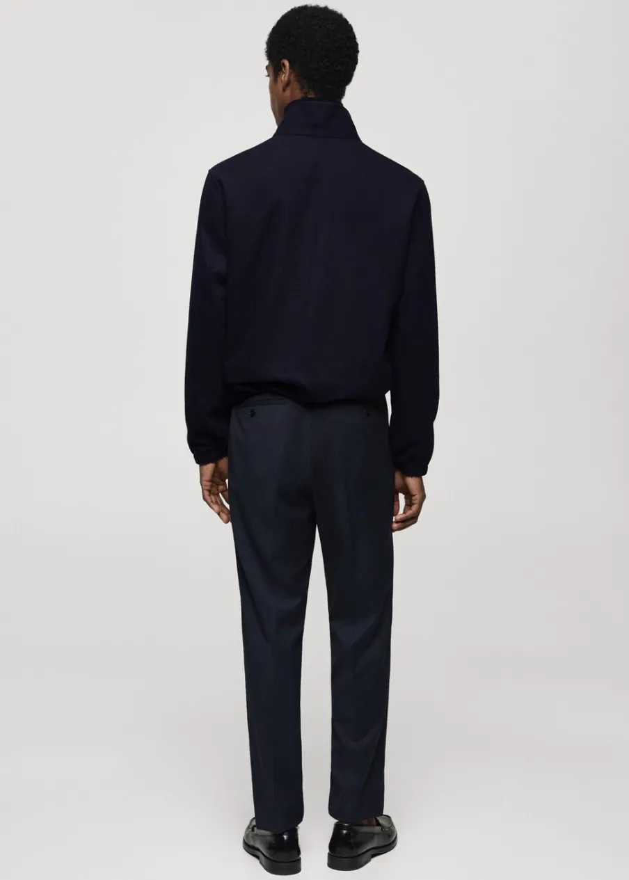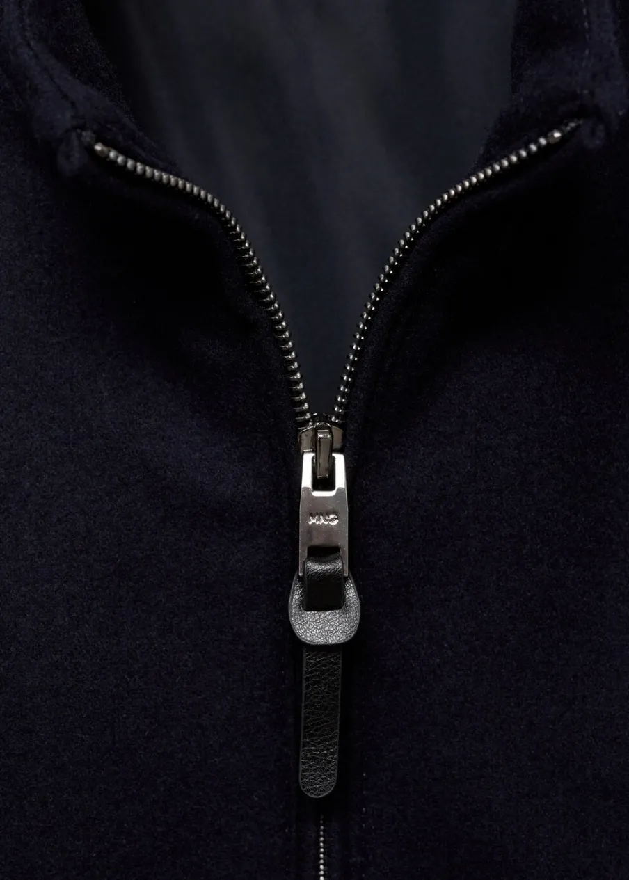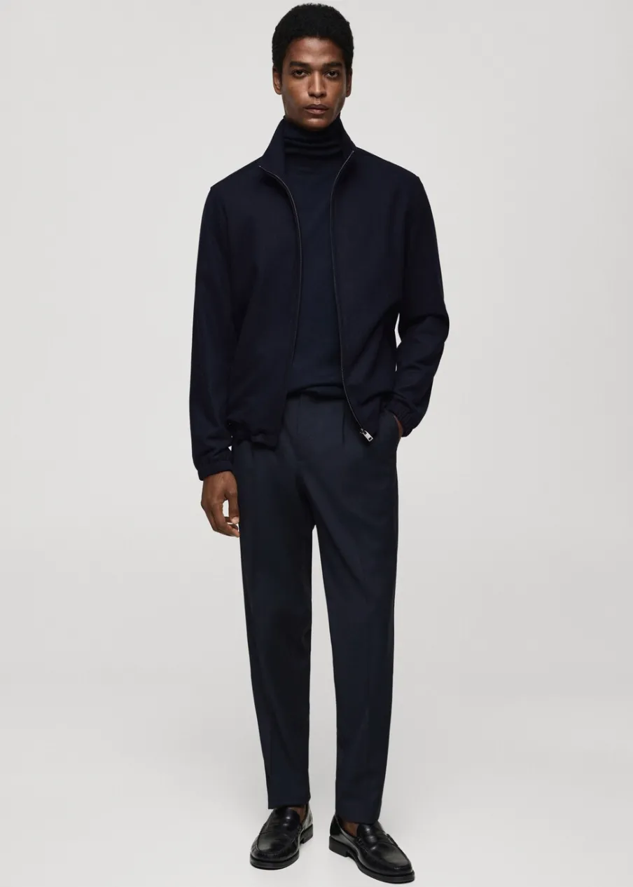 ESSENTIALS: Made to last. Wełniana tkanina. Kominowy kołnierz. Zapięcie na zamek z przodu. Dwie kieszenie po bokach z zapięciem na zatrzask. Dół nogawek regulowany. Wewnętrzna podszewka. Model ma 187 cm wzrostu i nosi rozmiar M. Długi rękaw z elastycznymi marszczonymi mankietami.