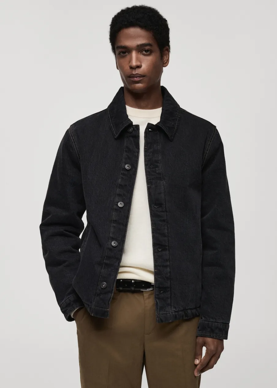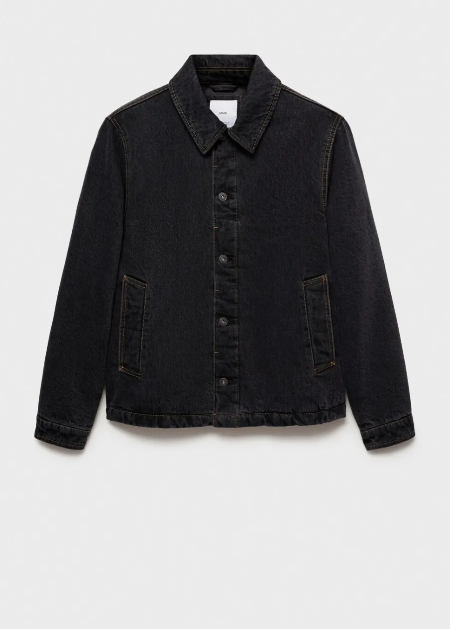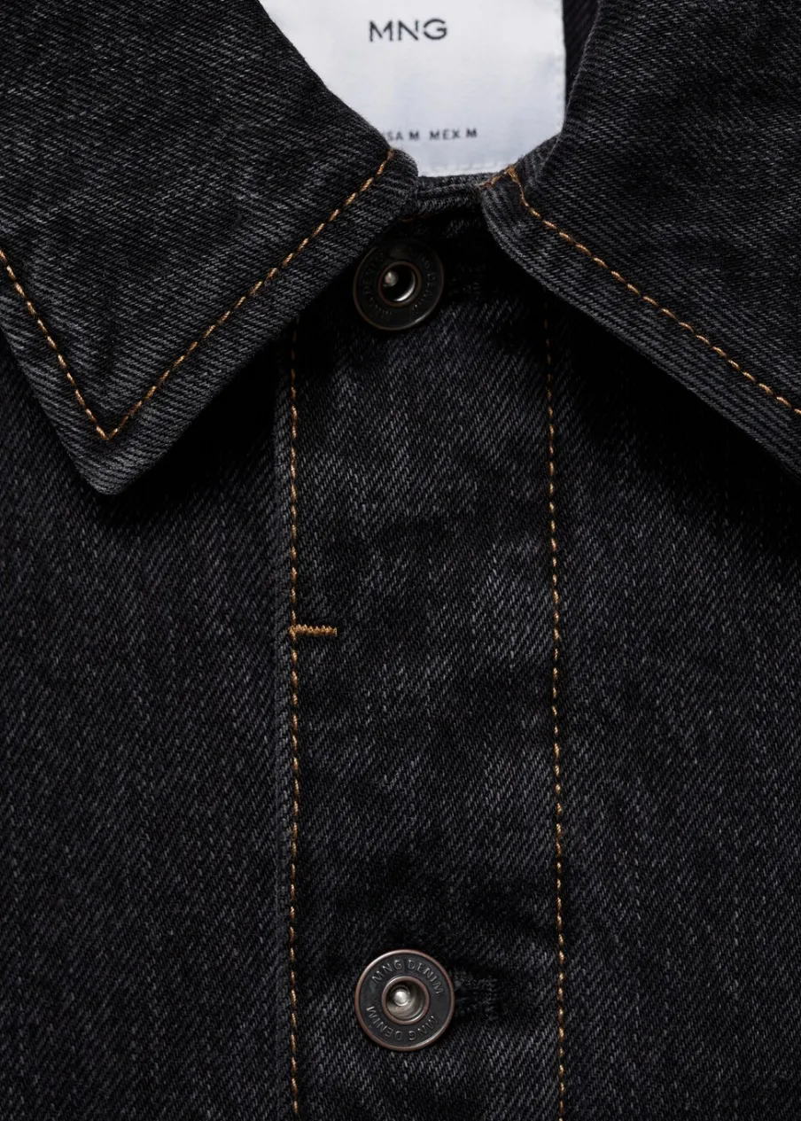 OpisKrój regular. 100% bomull. Ciemny denim. Koszulowy kołnierz. Stębnowane detale. Zapięcie na guziki. Dwie wpus…