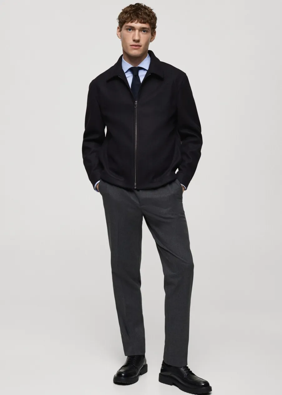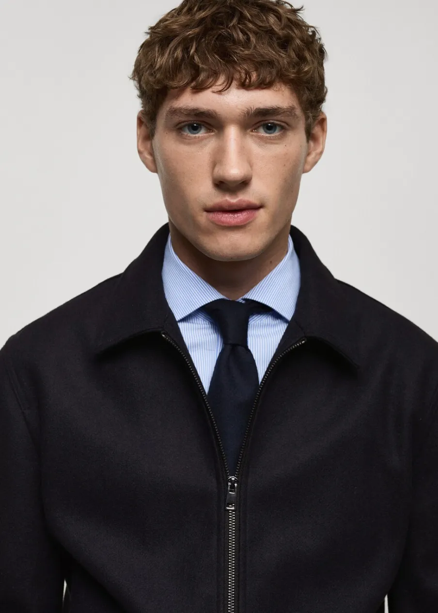Krój regular. Tkanina flanelowa. Koszulowy kołnierz. Zapięcie na suwak. Zapinane mankiety. Model ma 185 cm wzrostu i nosi rozmiar M.
