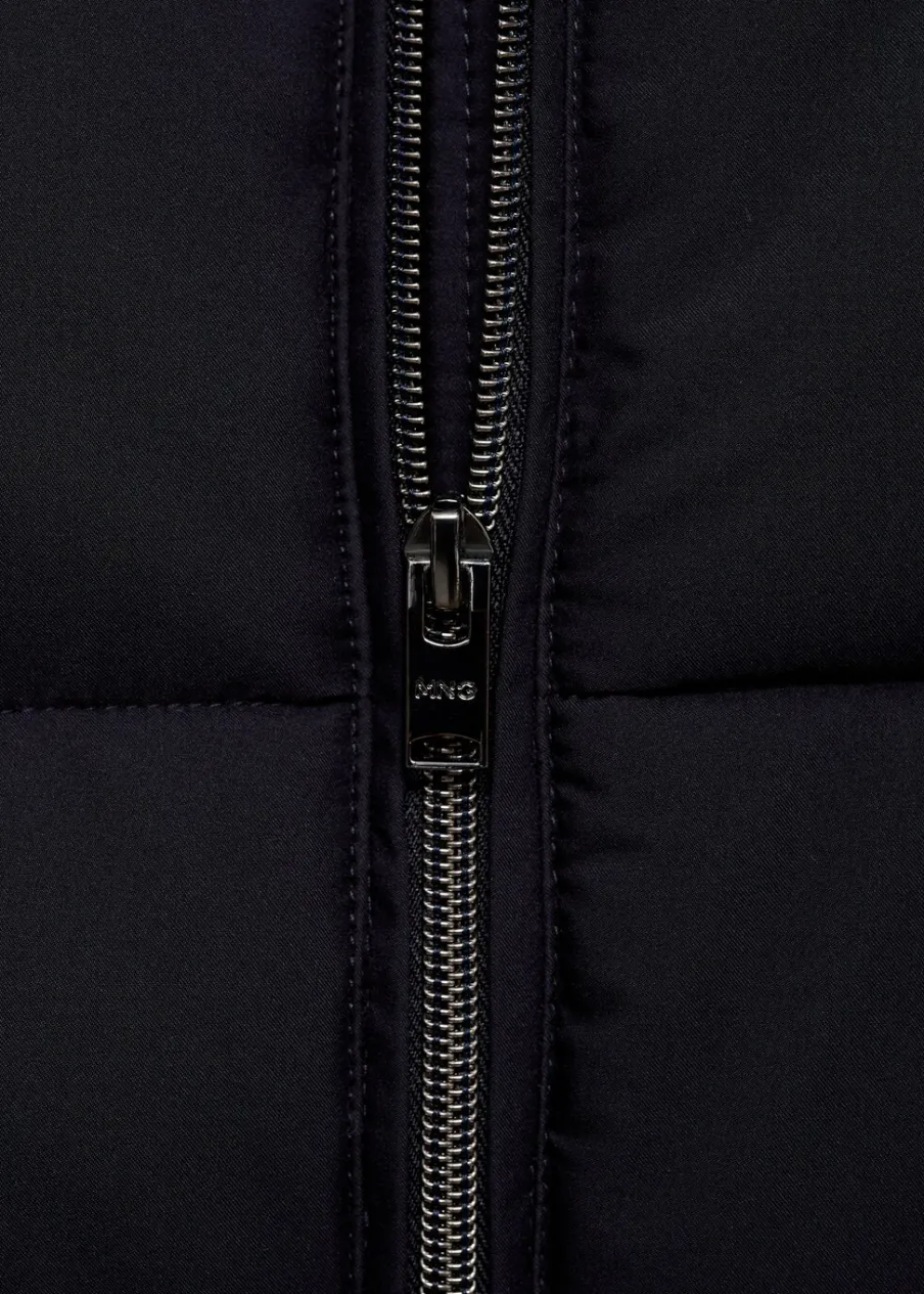 Wypełnienie z 100% poliestru z recyklingu. Krój regular. Model pikowany. Kaptur z regulowanym sznurkiem. Bez rękawów. Zapięcie na zamek z przodu. Dwie kieszenie wewnętrzne zapinane na suwak. Wewnętrzna podszewka. Model ma 190 cm wzrostu i nosi rozmiar M. Water Repellent: trwałe wykończenie tego modelu chroni przed lekkim deszczem, odpycha cząsteczki wody i krople deszczu. Termoregulacyjna: ta tkanina zapewnia optymalną przepuszczalność powietrza, by utrzymać stałą temperaturę ciała. Windproof: ten wytrzymały materiał zapewnia ochronę przed wiatrem dla większego komfortu podczas aktywności na świeżym powietrzu. Wewnętrzny sznurek do regulacji u dołu.