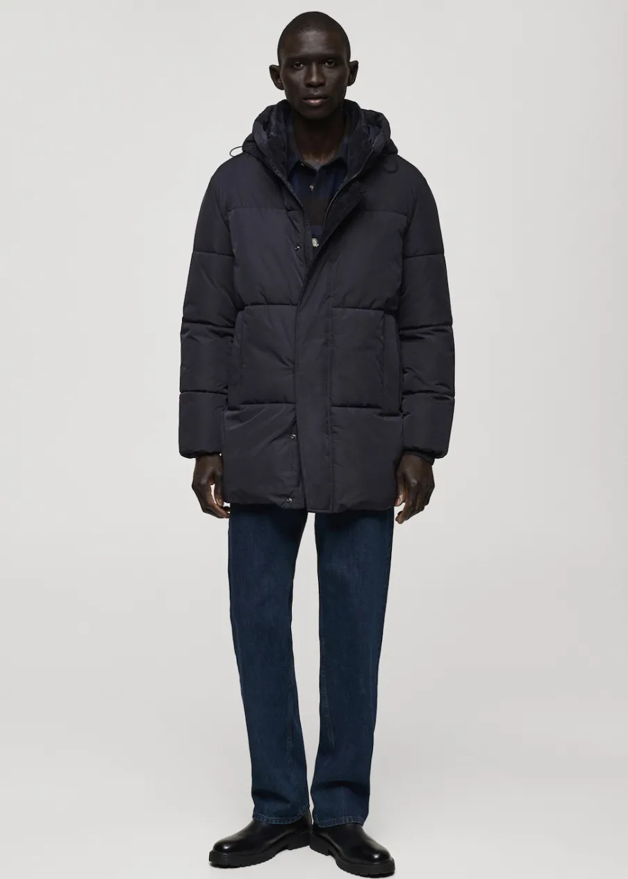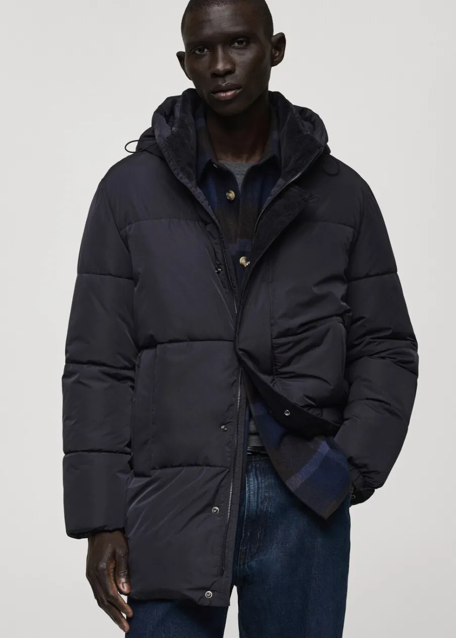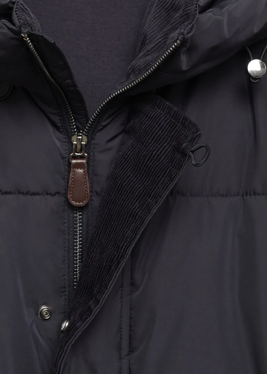 Materiały z recyklingu. Model pikowany. Model długi. Zapięcie z przodu. Model prosty. Długi rękaw. Dwie kieszenie z wypustkami z przodu. Zapięcie na zamek i zatrzaski z przodu. Wstawki ze sztruksu od wewnątrz. Model ma 185 cm wzrostu i nosi rozmiar M. Water Repellent: trwałe wykończenie tego modelu chroni przed lekkim deszczem, odpycha cząsteczki wody i krople deszczu. Windproof: ten wytrzymały materiał zapewnia ochronę przed wiatrem dla większego komfortu podczas aktywności na świeżym powietrzu. Kaptur. Ciężka struktura.
